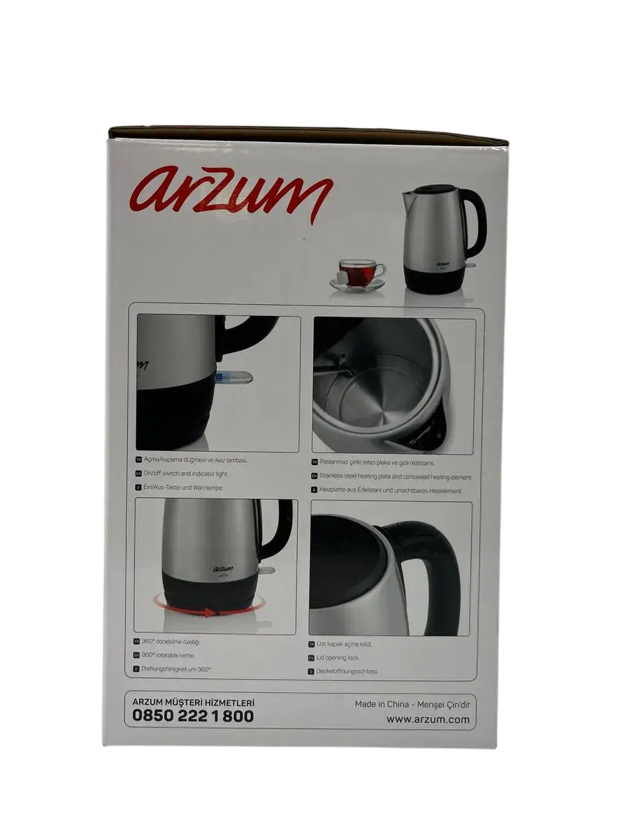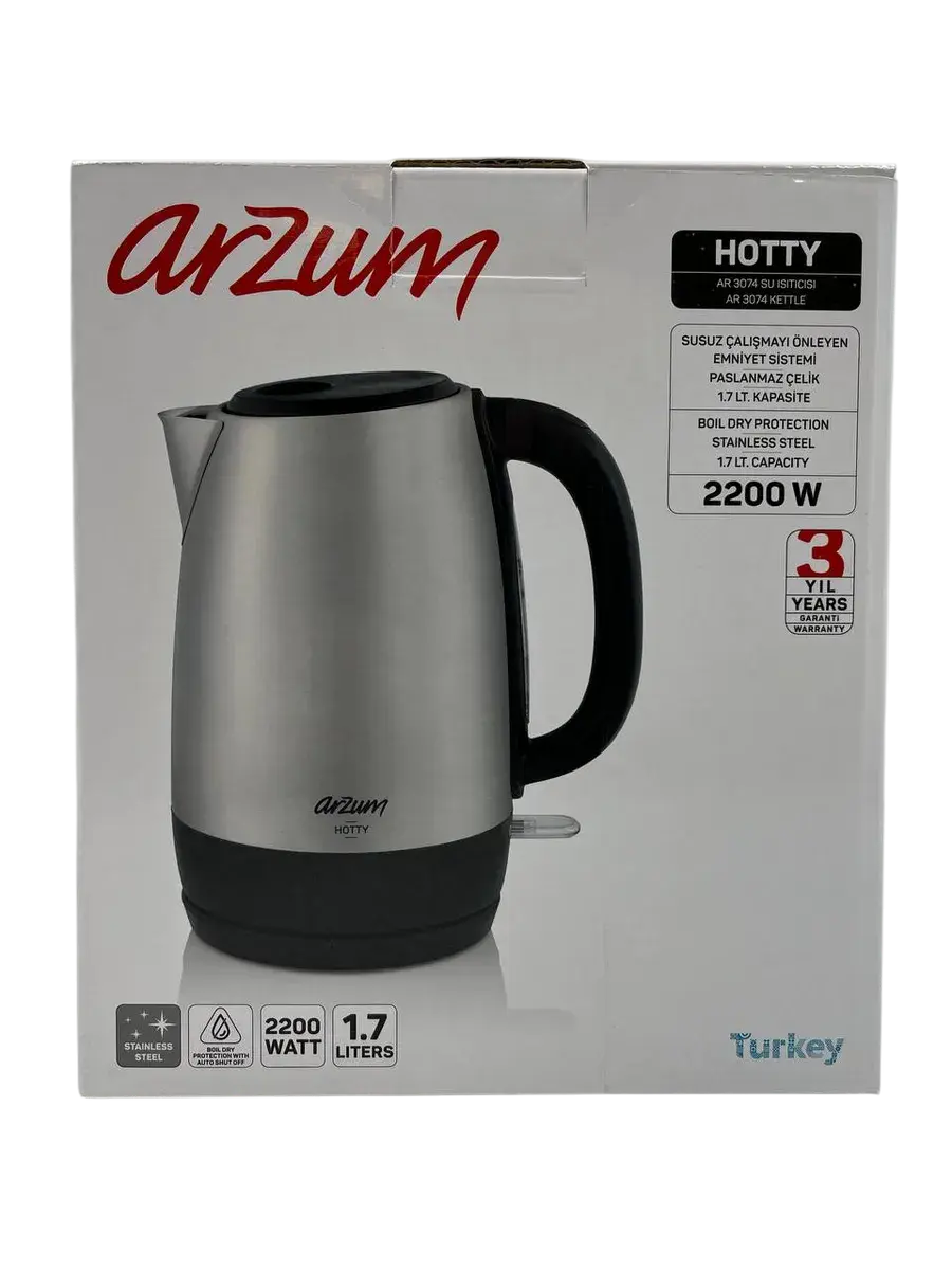 Arzum Hotty привлекает внимание своим современным дизайном и высокой производительностью. Он оснащен высокоэффективным нагревательным элементом мощностью 2200 Вт, который быстро кипятит воду и экономит время пользователей.
