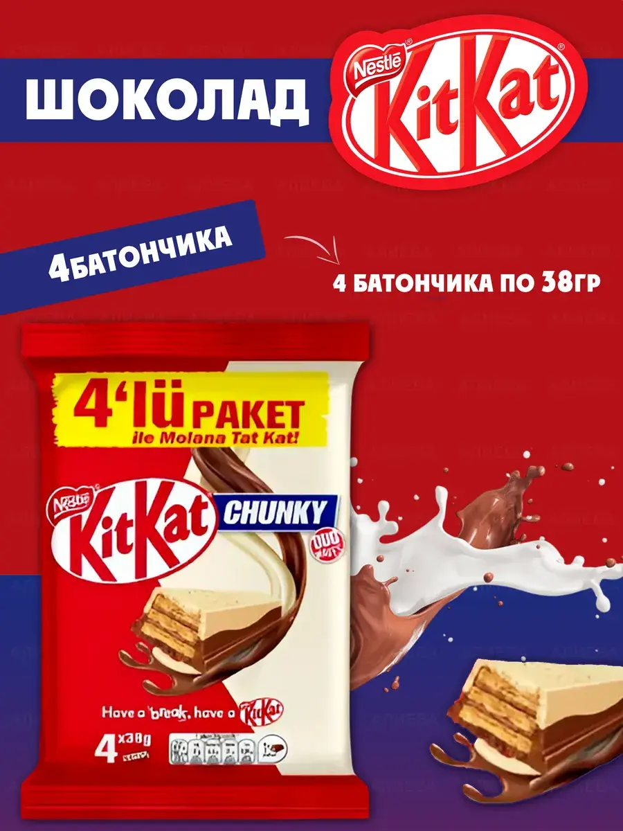 Любимый хрустящий KitKat (КитКат) в нежном белом и молочном шоколаде! Необыкновенный вкус питательного батончика зарядит энергией и силами на весь день - возьмите его с собой на учебу, на работу или просто устройте вкусную паузу дома!