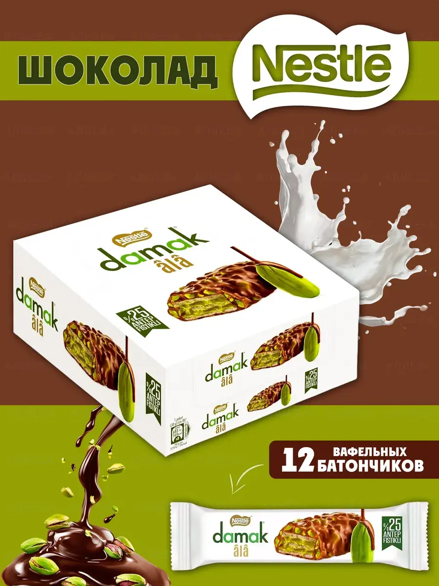 Батончик Nestle Damak Ala с фисташкой, 12 шт по 30 гр