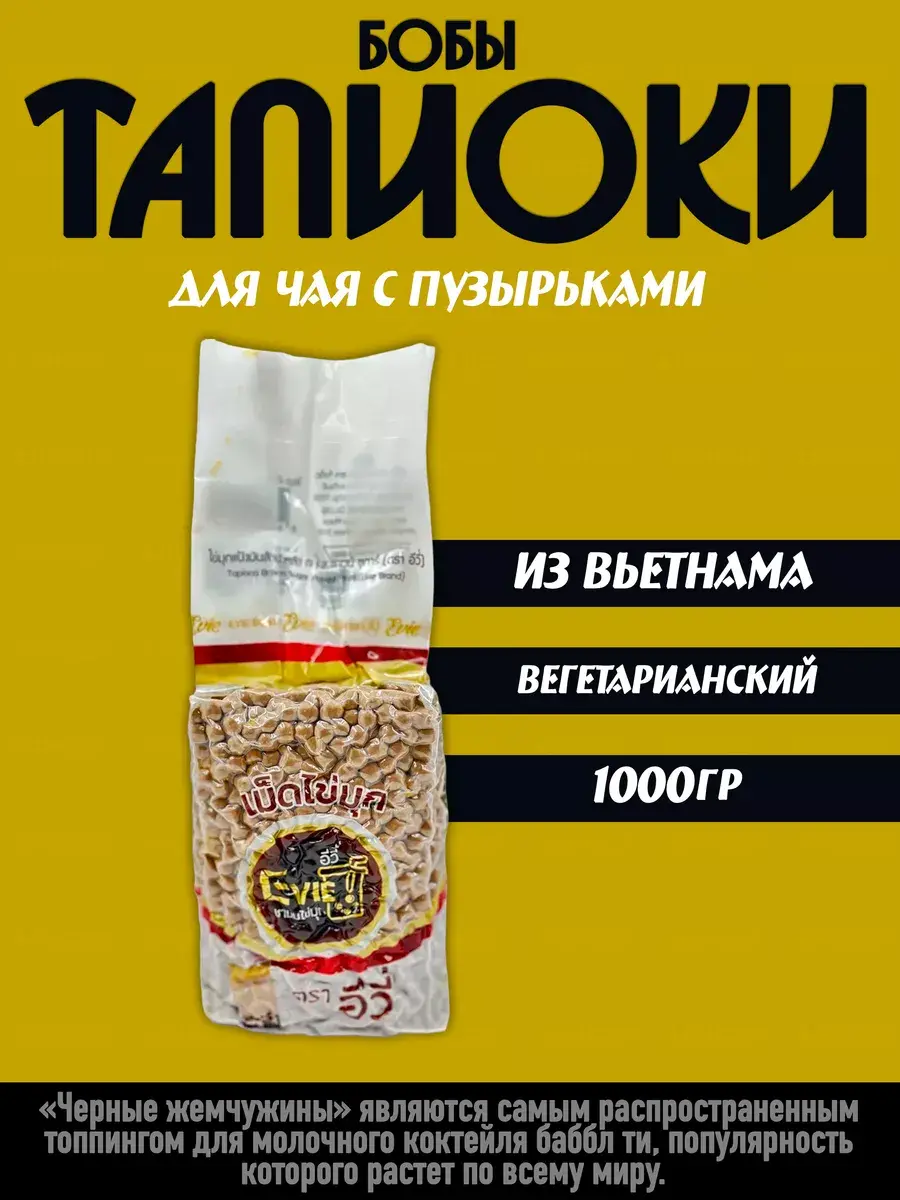 Тапиока – это жевательные шарики для Bubble Tea из крахмальной муки растения маниок. «Черные жемчужины» являются самым распространенным топпингом для молочного коктейля баббл ти, популярность которого растет по всему миру.
