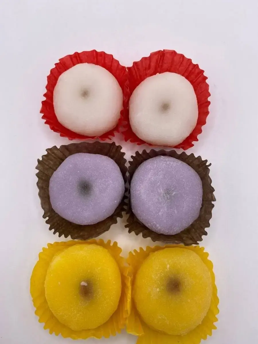 Моти, нежный китайский рисовый десерт со вкусами сакура, корень таро, арахис, красная фасоль, кунжут.Моти - традиционные китайские сладости на основе риса. Они изготавливаются особым образом и подаются к чайной церемонии.Моти делается из истолчённого в пасту клейкого риса, особого известного с давнего времени сорта мотигомэ, который при долгом толчении и смачивании приобретает сладкий вкус.Никакой химии, только натуральные составляющие.Не содержат ароматизаторов и усилителей вкуса, поэтому не имеют ярко выраженного аромата и вкуса.Некоторым покажутся пресными и не вкусными, но любителям не очень сладкого понравятся.Не путайте пожалуйста со сладким мармеладом, любителям сладкого и сильно пахнущего не понравится.
