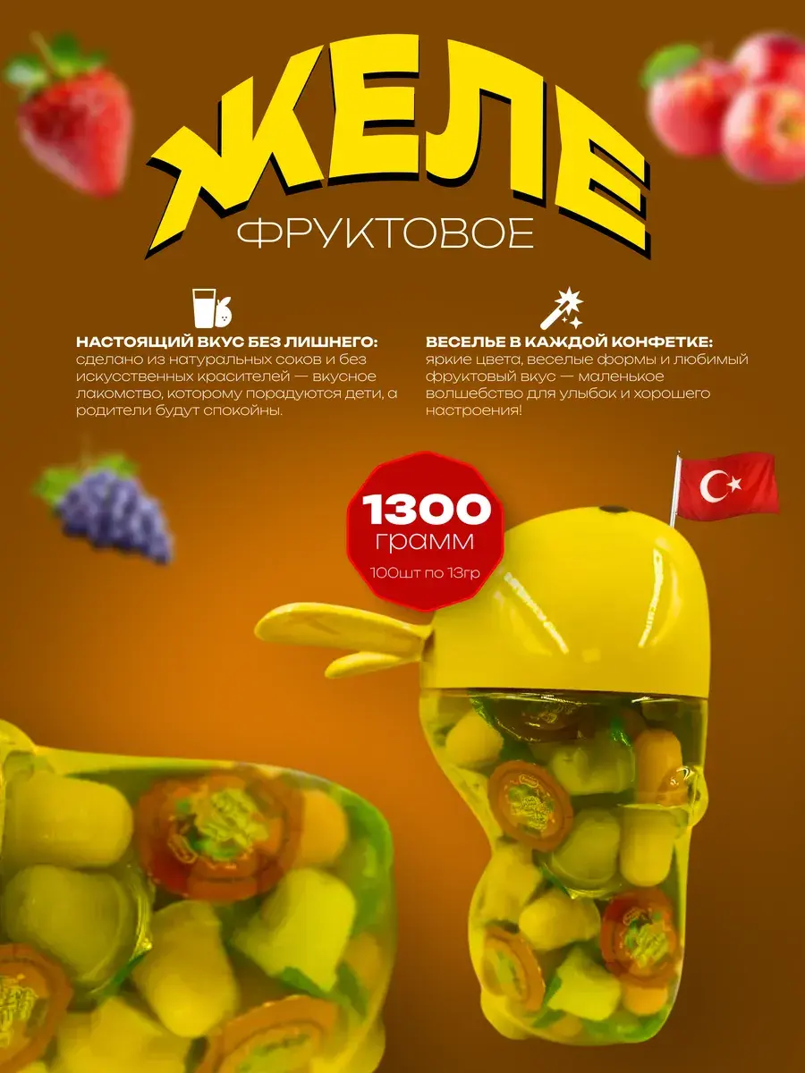 Десерт желейный заяц с фруктовыми вкусами изготовлен в яркой индивидуальной упаковке, поэтому ее удобно брать с собой на прогулки. Насыщенный вкус и яркий дизайн никого не оставят равнодушным! Такой набор можно использовать в виде угощения гостей для вашего праздника Нового года и других детских утренников.