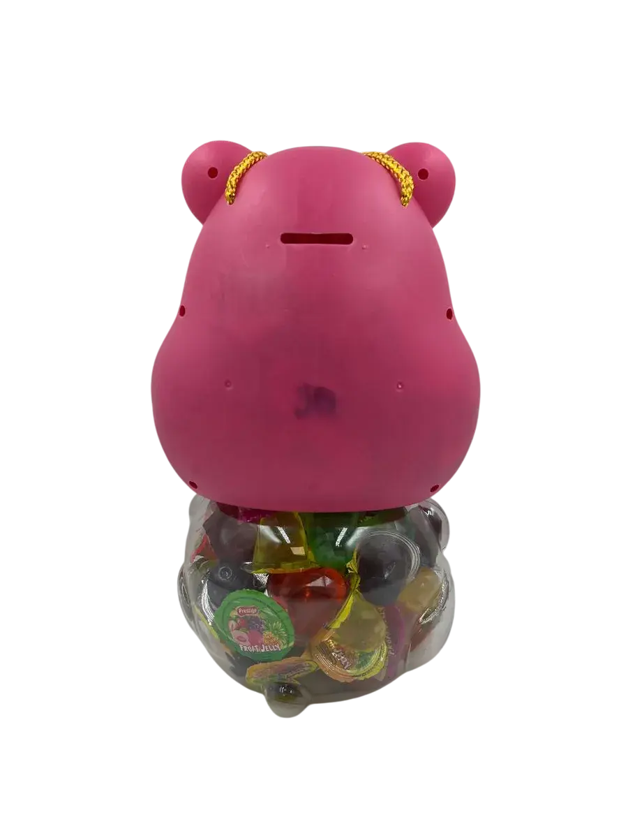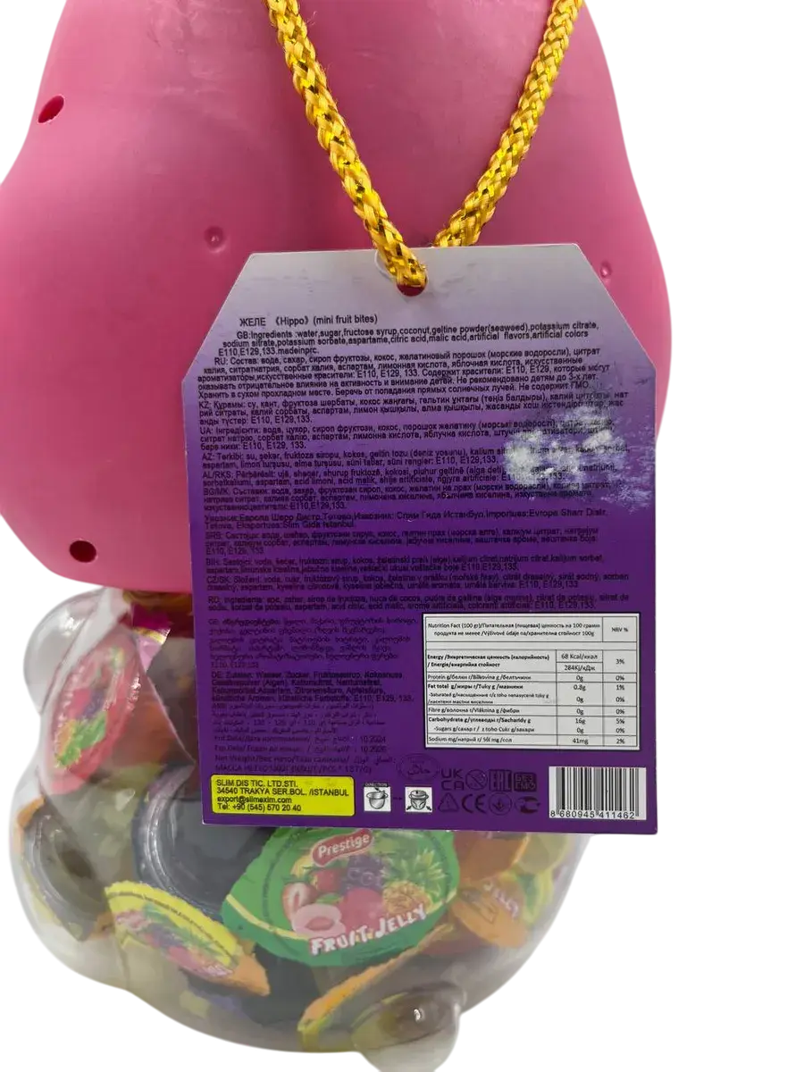 Десерт желейный в банке в форме бегемота - нежное фруктовое желе с небольшим количеством фруктового сока в копилке. Каждая мини желейка находится в индивидуальной упаковке. Фруктовое желе похоже на фигурный сладкий или кислый, фруктовый или ягодный мармелад, джем или пудинг. Яркий красочный дизайн поднимет настроение, а микс вкусов клубники, яблока, апельсина, манго, персика и винограда придтся вам и вашим детям по душе.