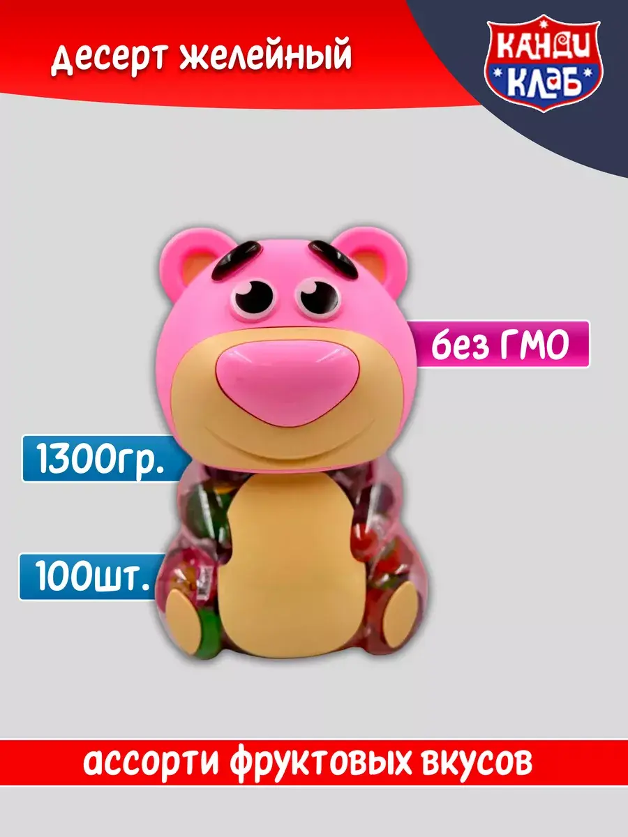 Десерт желейный в банке в форме медведя - нежное фруктовое желе с небольшим количеством фруктового сока в копилке. Каждая мини желейка находится в индивидуальной упаковке. Фруктовое желе похоже на фигурный сладкий или кислый, фруктовый или ягодный мармелад, джем или пудинг. Яркий красочный дизайн поднимет настроение, а микс вкусов клубники, яблока, апельсина, манго, персика и винограда придтся вам и вашим детям по душе.