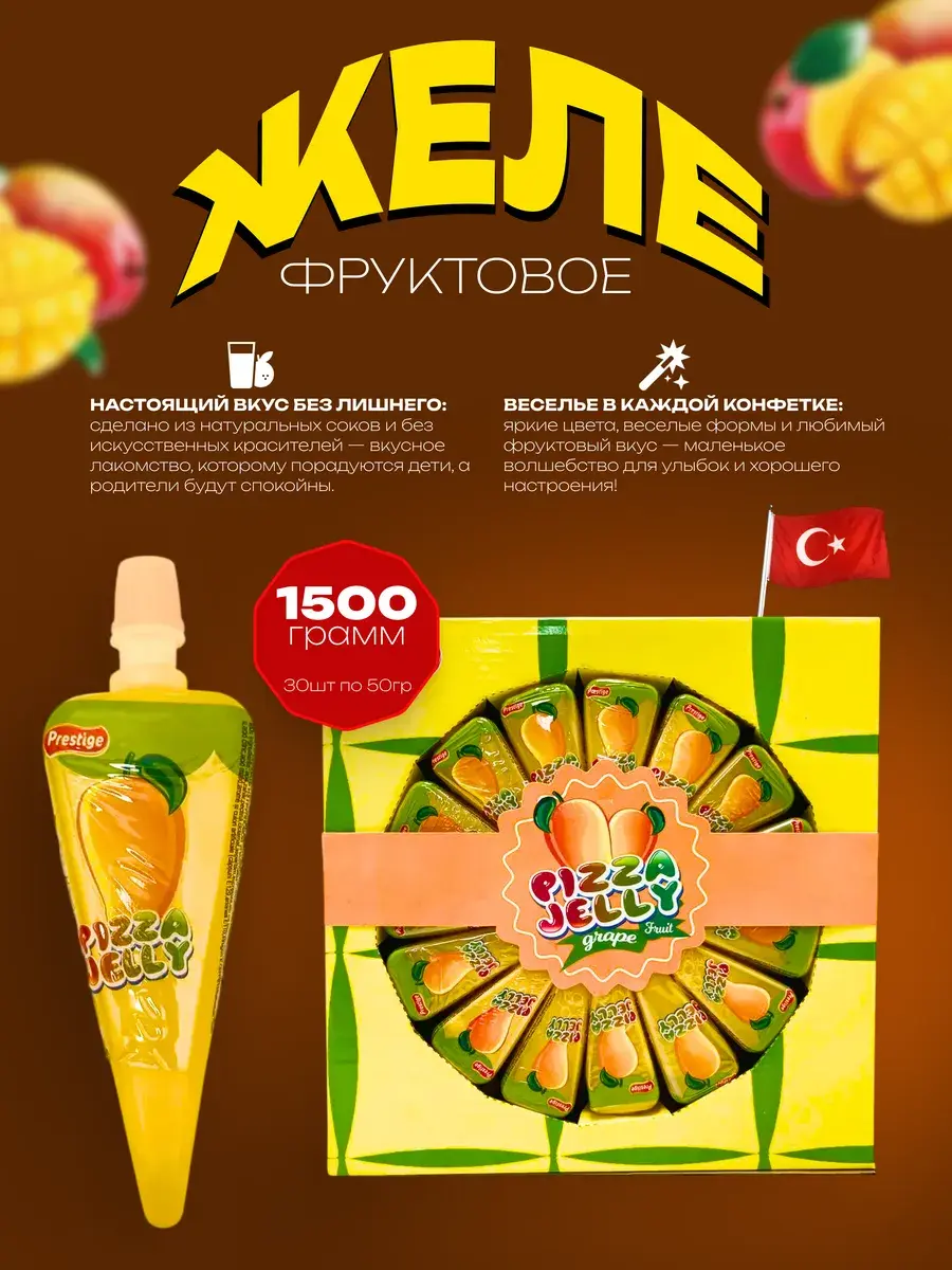 Откройте для себя экзотику тропиков с желейным десертом в форме долек со вкусом манго. В каждой упаковке — 30 солнечных долек по 50 мл, наполненных ярким и сочным вкусом спелого фрукта. Этот десерт подарит вам настоящее гастрономическое путешествие и зарядит энергией и позитивом. Идеальное лакомство для тех, кто хочет добавить в свой день немного тропического настроения и насладиться невероятно насыщенным вкусом.
