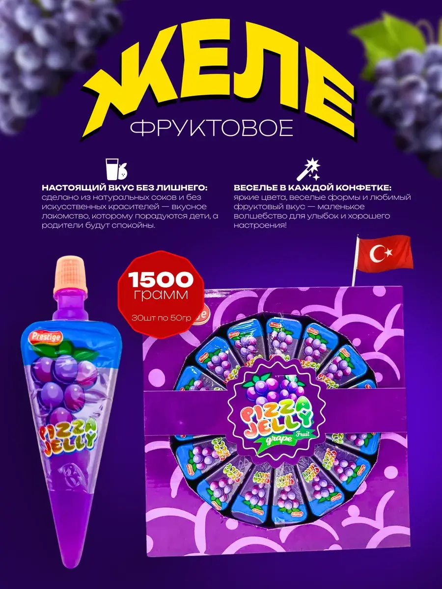 Насладитесь насыщенным и сладким вкусом солнечного винограда с желейным десертом в виде долек. В каждой упаковке вас ждет 30 порций по 50 мл, каждая из которых — это взрыв настоящего виноградного сока. Удобная форма в виде долек делает процесс употребления особенно приятным и интересным. Этот десерт станет любимым перекусом для тех, кто ценит богатый и естественный вкус любимых ягод.