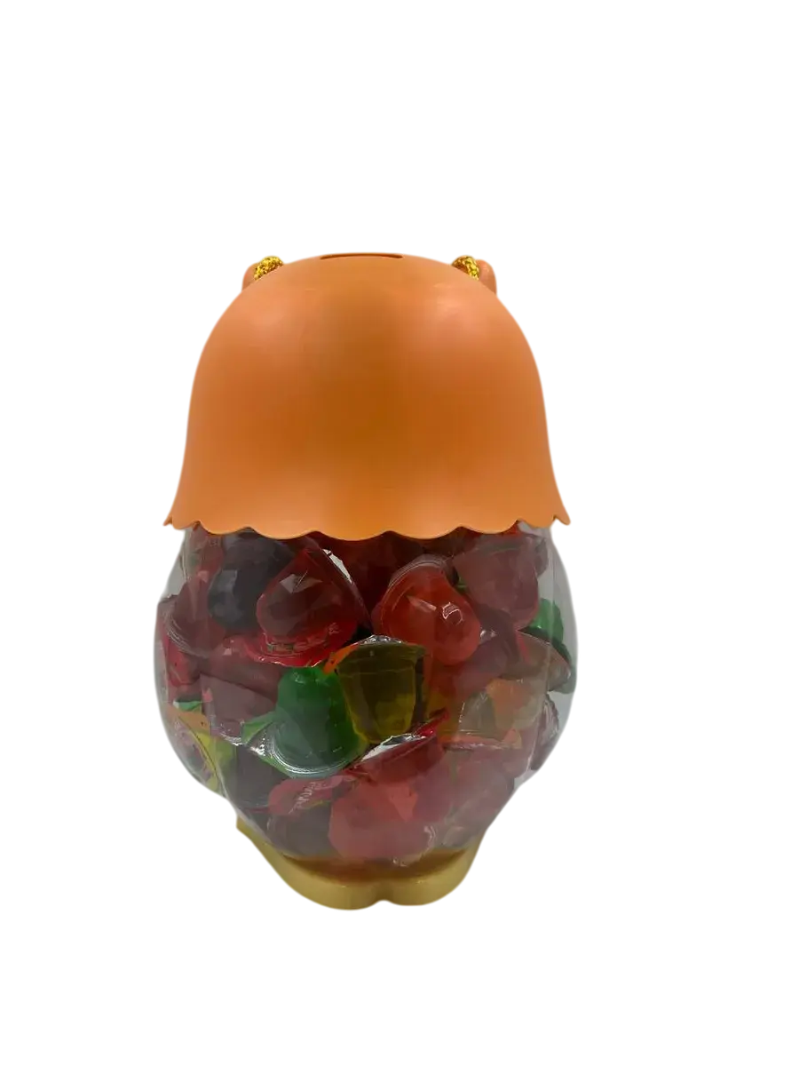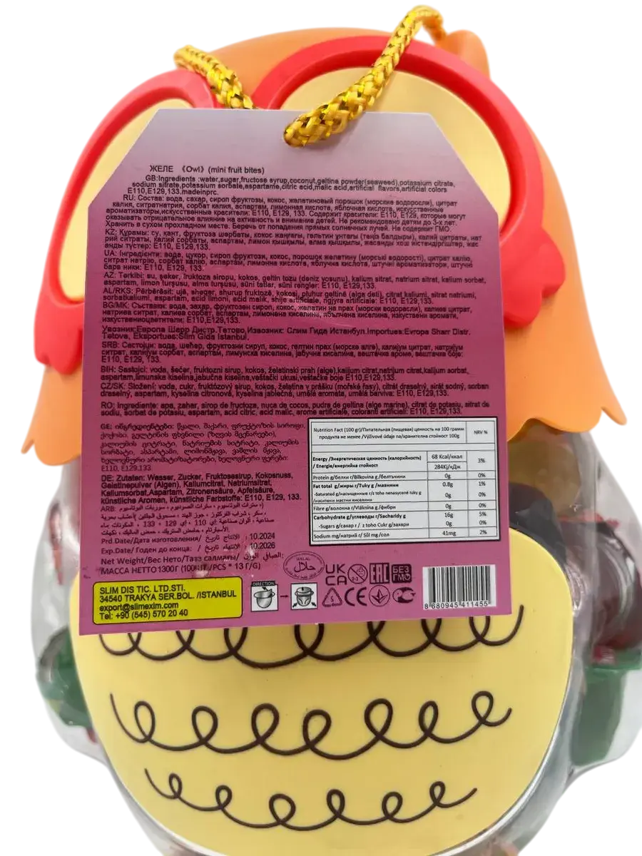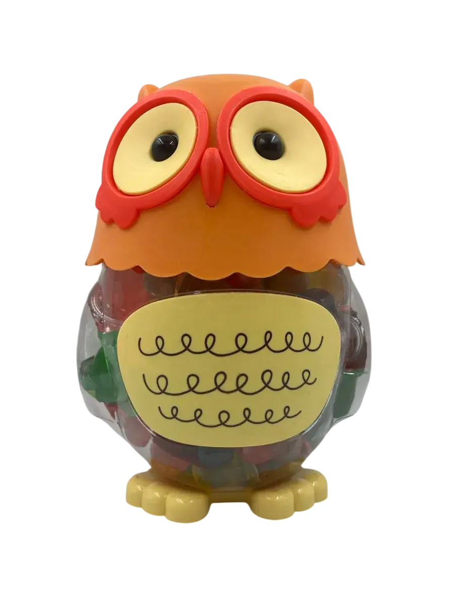 Десерт желейный в банке- копилке в форме совы- нежное фруктовое желе с небольшим количеством фруктового сока в копилке. Каждая мини желейка находится в индивидуальной упаковке. Фруктовое желе похоже на фигурный сладкий или кислый, фруктовый или ягодный мармелад, джем или пудинг. Яркий красочный дизайн поднимет настроение, а микс вкусов клубники, яблока, апельсина, манго, персика и винограда придтся вам и вашим детям по душе.