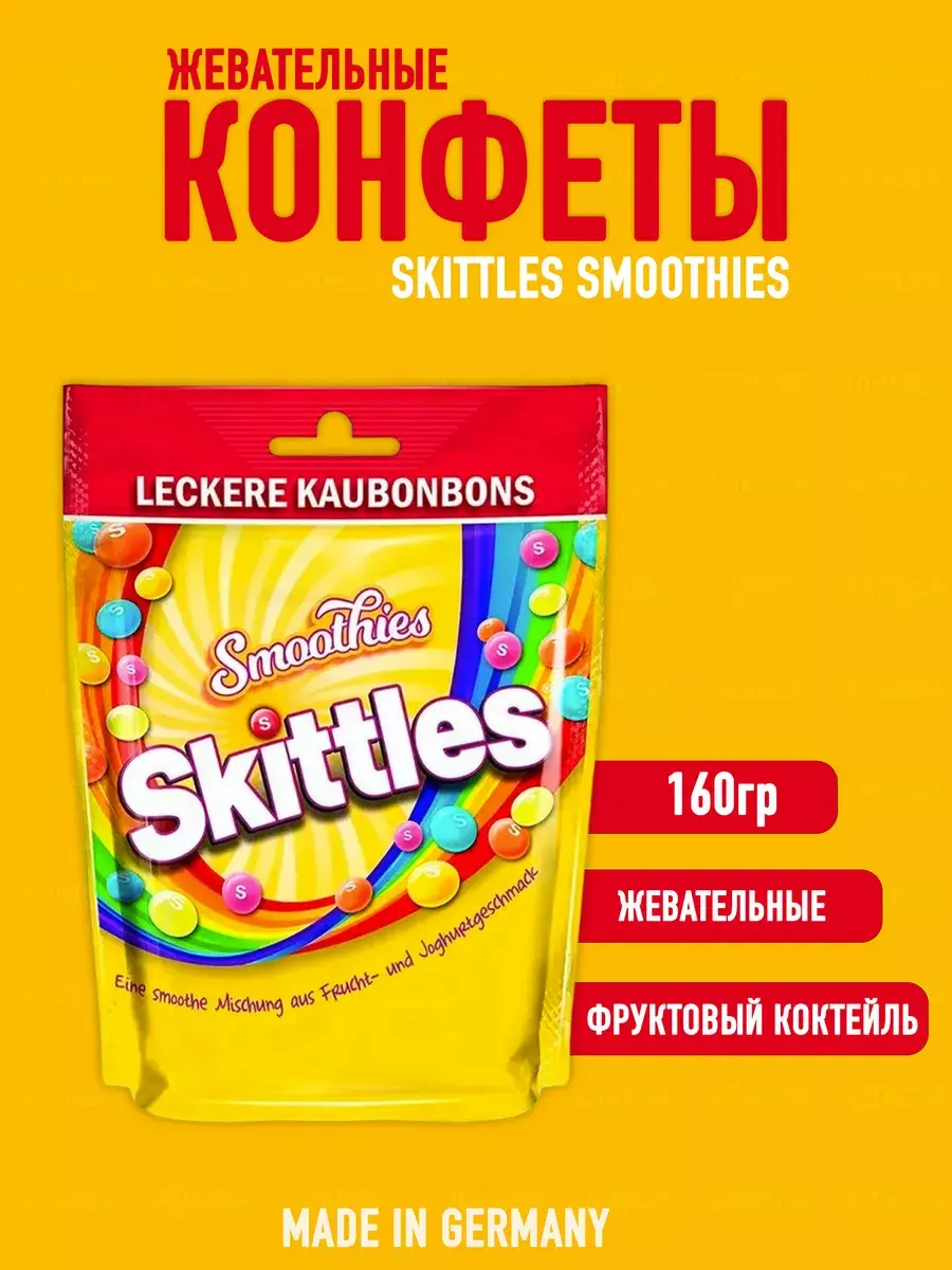 Skittles Smoothies - это не просто драже, это взрыв вкусов в каждом кусочке. Каждый пакет содержит ассорти из нескольких видов фруктовых драже с яркими и сочными вкусами, такими как клубника, банан, малина, ананас и многое другое.