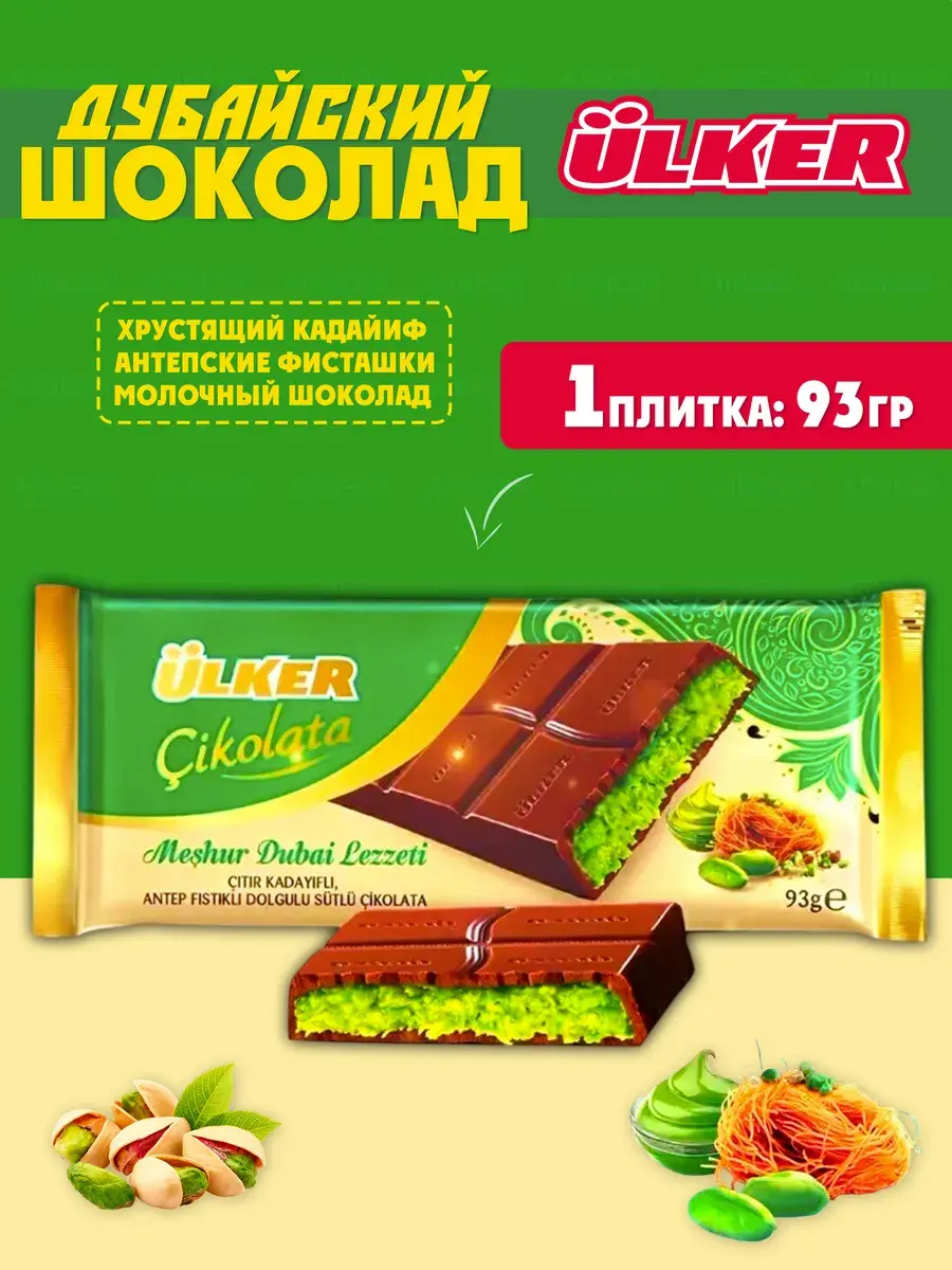 Трендовый дубайский шоколад (дубайский десерт с фисташковой начинкой) от турецкого бренда "Ulker" идеальный десерт для любителей, как восточных, так и других необычных сладостей.