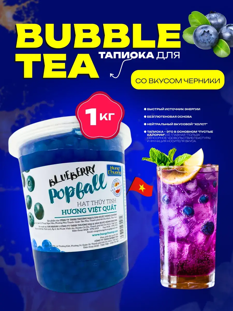 Добавьте насыщенный и сочный вкус черники в ваш bubble tea с джус боллами, которые лопаются во рту! Эти вкусные шарики превратят каждый глоток вашего бабл ти в настоящее удовольствие, идеально сочетаясь с традиционной тапиокой и создавая уникальный вкус и текстуру.
