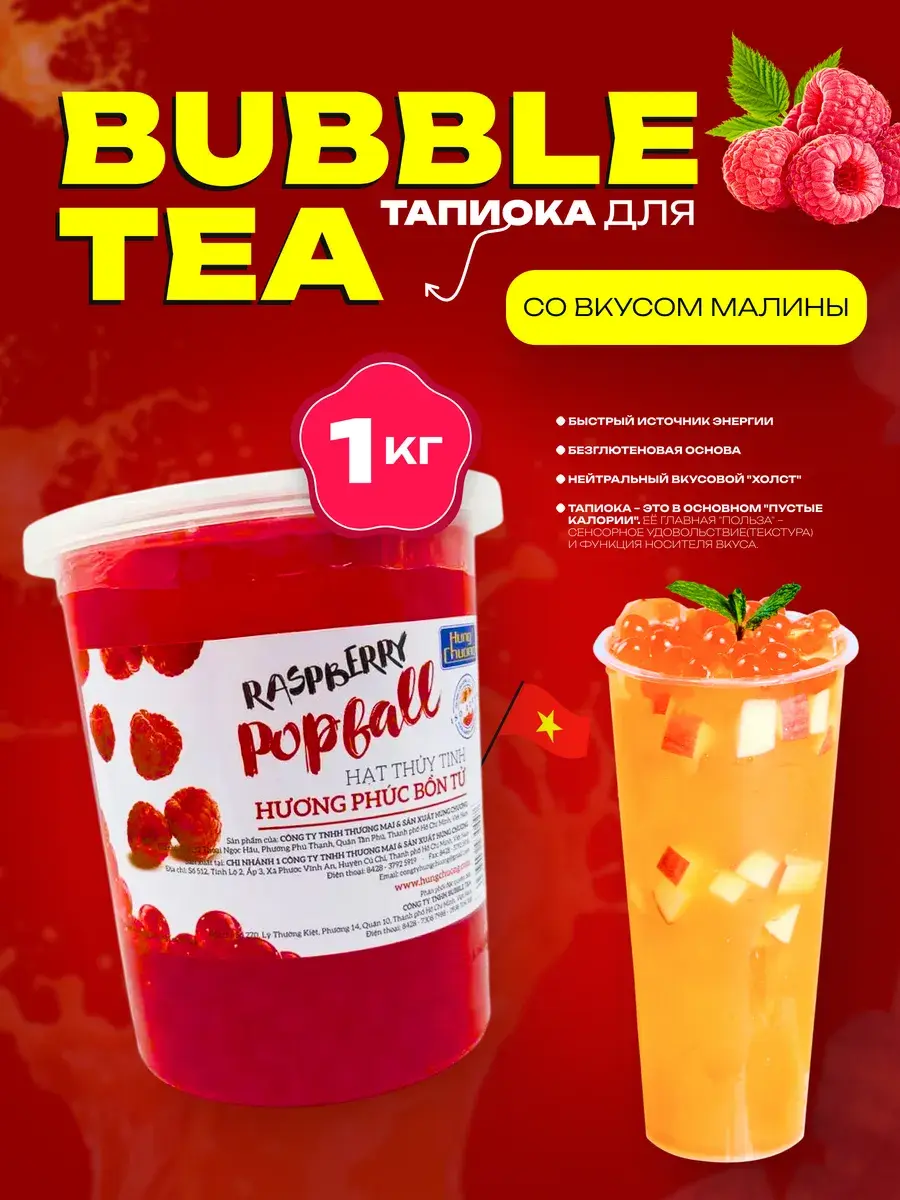 Попробуйте джус боллы со вкусом малины и тапиоку для бабл ти – это идеальный способ сделать ваш напиток ягодным, вкусным и запоминающимся!