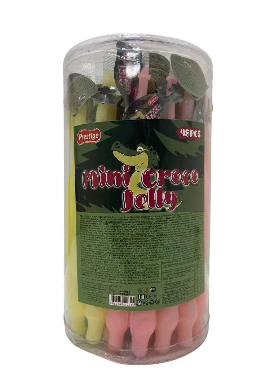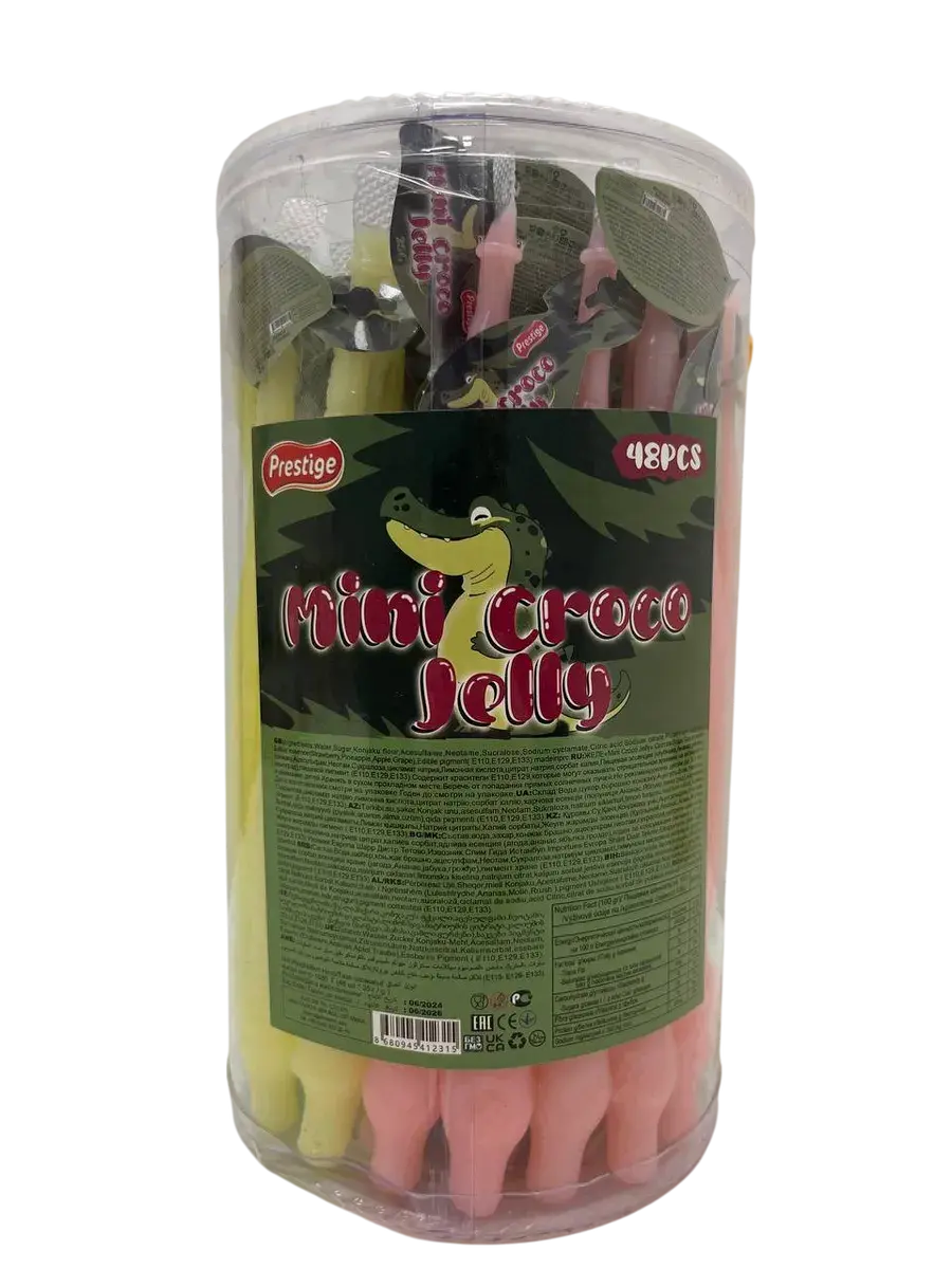 Турецкий производитель Prestige представляет фруктовое желейное ассорти в забавной форме крокодила, которое предлагает свежий взгляд на желейные сладости. В каждой банке вас ждет 48 желейных изделий весом по 35 грамм каждое, где оригинальная форма сочетается с насыщенным вкусом. Продукция включает четыре классических фруктовых вкуса: сочную клубнику, тропический ананас, освежающее яблоко и ароматный виноград.
