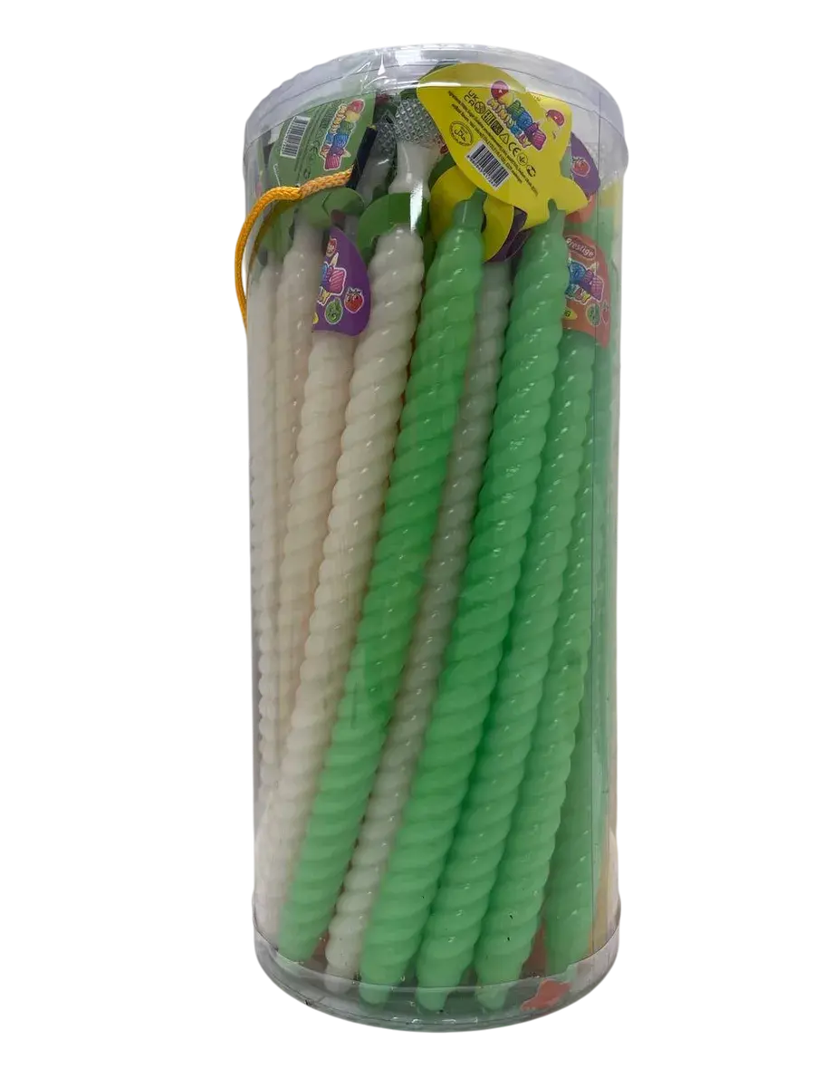 Нежное желейное ассорти обладает упругой текстурой и сбалансированными фруктовыми нотами. Каждое изделие в форме свечи индивидуально упаковано, что гарантирует гигиеничность и удобство использования на праздничных мероприятиях или для легкого перекуса. Продукт создан с применением натуральных ингредиентов и фруктовых ароматизаторов, соответствующих международным стандартам качества, что делает его универсальным лакомством для всей семьи.