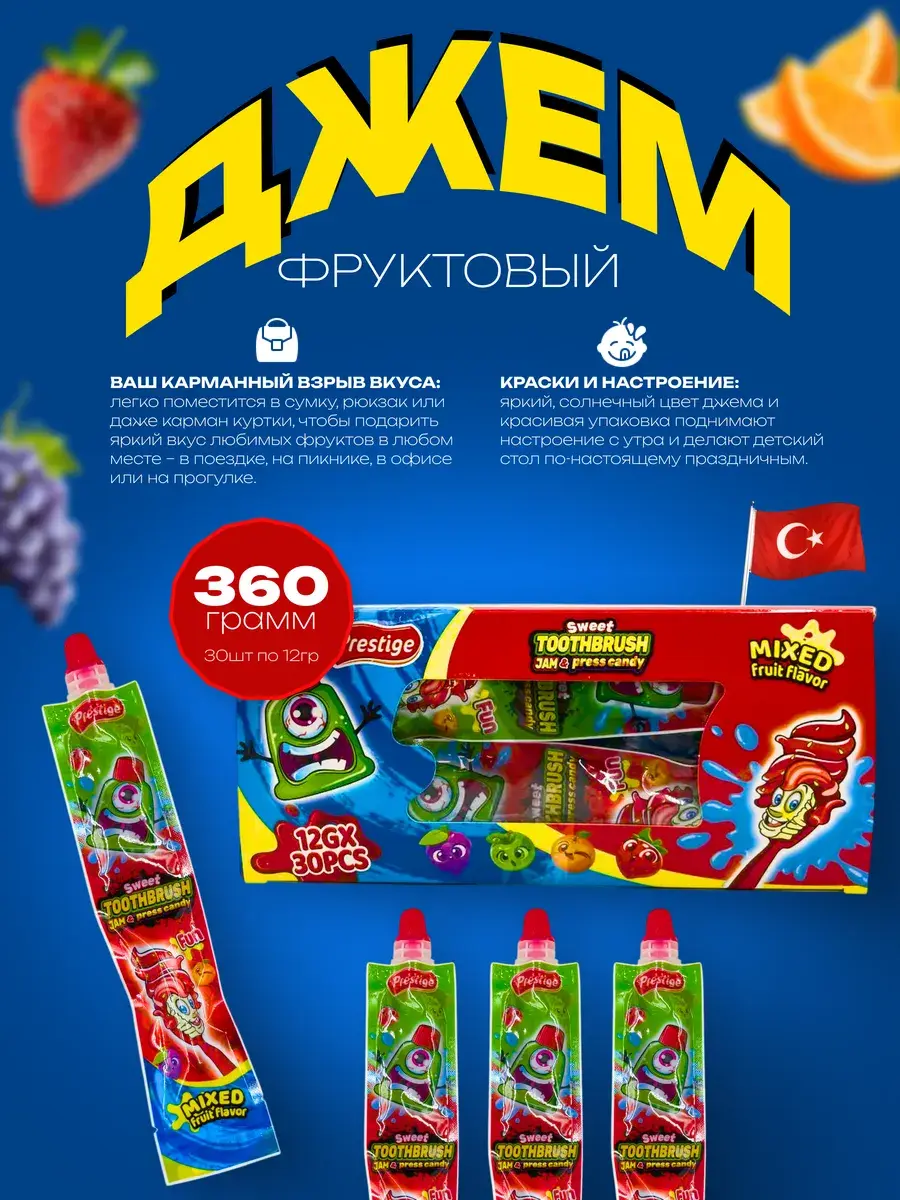Турецкий бренд Prestige представляет уникальное сочетание двух любимых сладостей в одной удобной упаковке. В каждом блоке вас ждет 30 порций по 12 грамм, где нежный фруктовый джем гармонично дополняется вкусной конфетой.