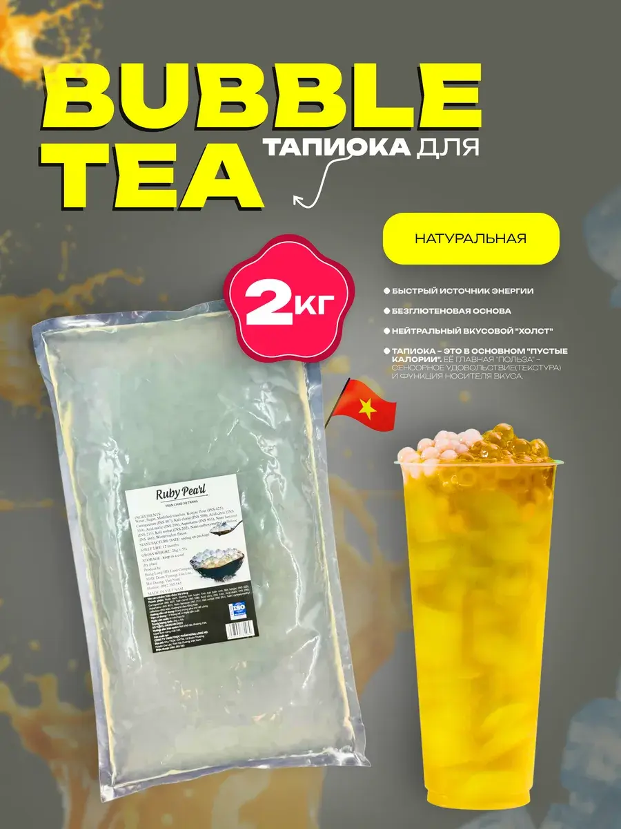 Это идеальный выбор для кафе, баров и домашних экспериментов – просто добавьте любимый сироп, и ваш бабл ти заиграет новыми оттенками. Шарики тапиоки прекрасно дополняют молочные коктейли, фруктовые чаи и освежающие лимонады, делая каждый глоток насыщенным и интересным. Удобная фасовка и быстрая подготовка экономят время, позволяя наслаждаться вкусным напитком без лишних хлопот. Создавайте свой уникальный бабл ти с идеальной тапиокой!