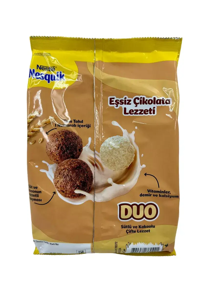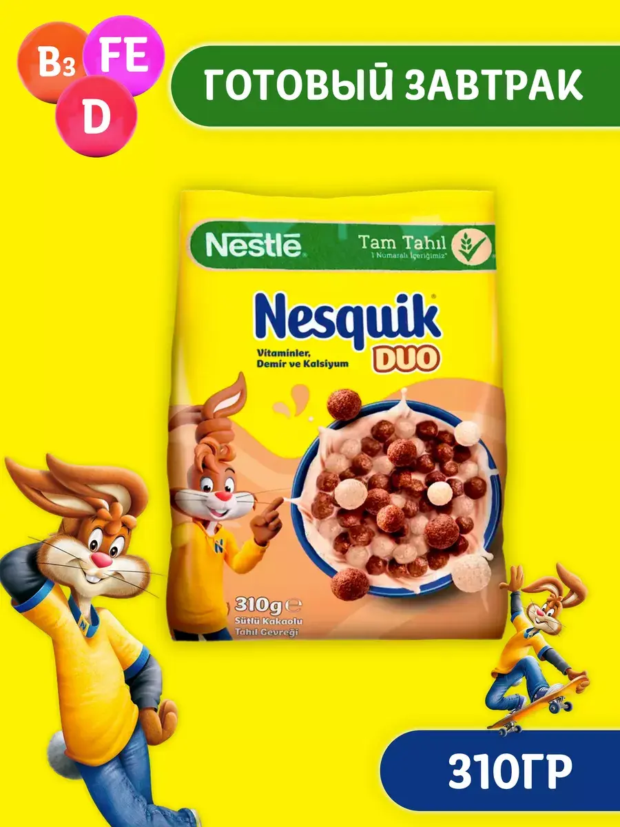 Сухой завтрак Nestle Nesquik DUO, 310 гр Сухой завтрак Nestle Nesquik Duo шоколадные шарики - это импортный продукт из Германии, который станет отличным выбором для любителей сладкого и вкусного. Nesquik - это всемирно известный бренд, который производится компанией Nestle, и этот качественный продукт не исключение. Шоколадные шарики - это настоящая вкусняшка, которая понравится всей семье. Этот немецкий сухой завтрак сделан из высококачественных ингредиентов, что обеспечивает его неповторимый вкус. Если вы хотите насладиться настоящим шоколадным вкусом, то этот продукт именно для вас. Не упустите возможность попробовать эту вкусную и качественную продукцию от Nestle Nesquik Duo.