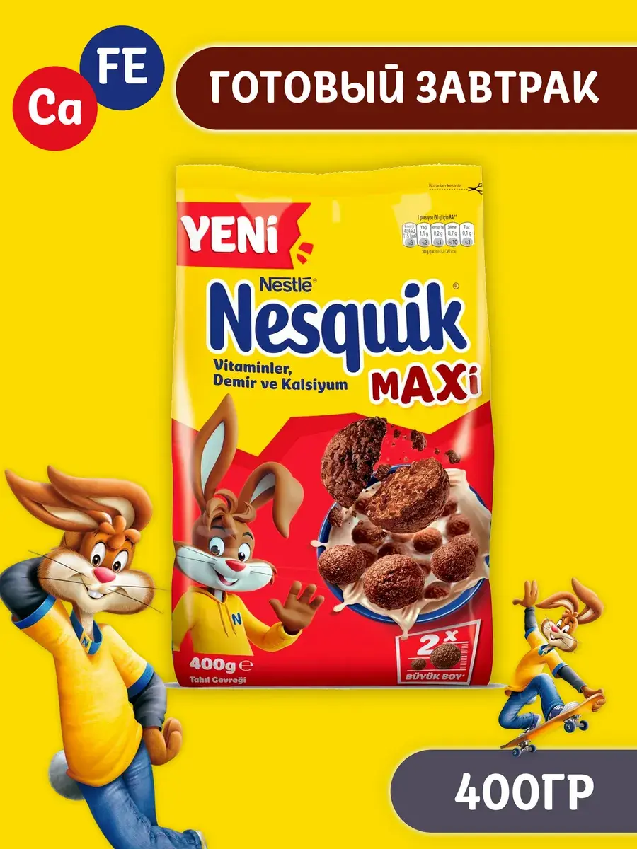Познакомьтесь с новым Nesquik Maxi – вкусным и полезным завтраком, который сделает утро вашего ребенка по-настоящему радостным! Наши уникальные кукурузные шарики с какао теперь в два раза больше, даря детям не только насыщенный шоколадный вкус, но и невероятное хрустящее удовольствие.