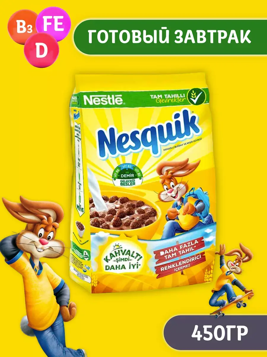Готовый завтрак Nestle Nesquik "Шоколадные шарики" - это не только вкусно, но и полезно! Цельные злаки являются источником клетчатки и сложных углеводов, а кальций важен для поддержания здоровья костей и зубов. Завтрак не требует времени на приготовление, и всей семье понравится шоколадный вкус шариков. Воздушные шоколадные шарики можно залить молоком, кефиром или йогуртом, которые добавят вашему завтраку еще больше полезных веществ. Вкусные шоколадные шарики Nesquik подарят заряд энергии и позитивные впечатления на все утро!