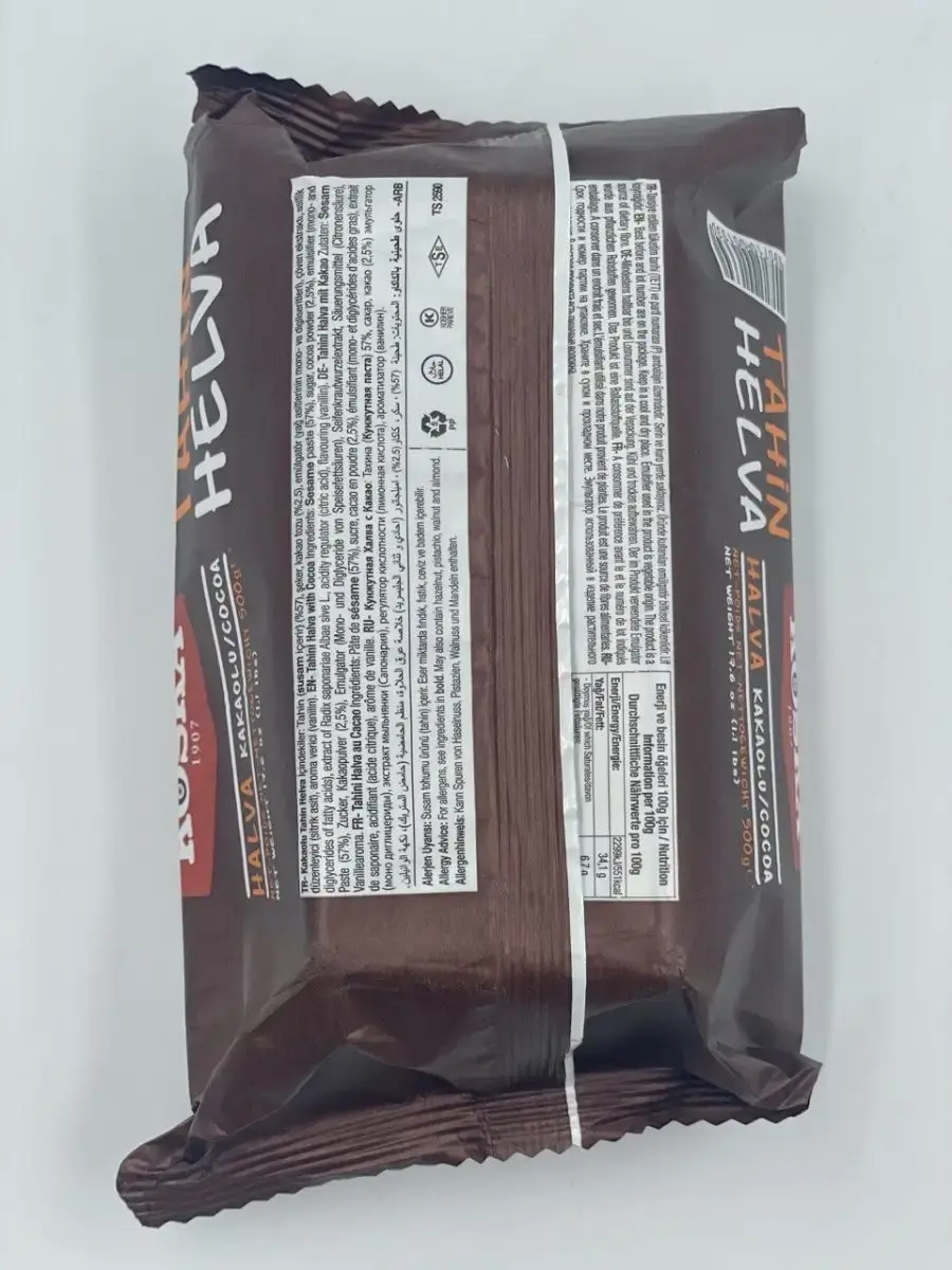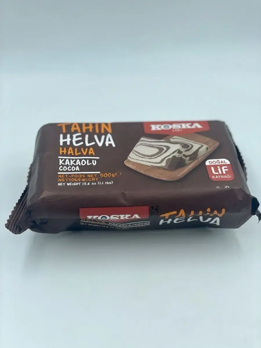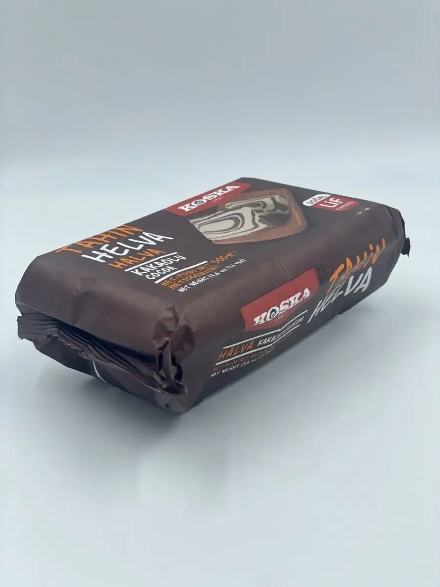 Кунжутная халва c какао - это классическое восточное лакомство, которое отличается не только приятным вкусом, но и богатым составом и полезными микроэлементами, что обусловлено высоким содержанием кунжутной пасты. Натуральный состав, традиционная рецептура и трепетное отношение к технологиям производства -вот ключевые принципы, которым придерживаются производители кунжутной халвы Koska. Кунжутная халва Koska делается из кунжута высочайшего качества и по особой технологии, которой производитель придерживается уже многие годы. Добавление какао порошка придает приятный шоколадный вкус и аромат кунжутной халве, а также обогащает этот продукт полезными жирами, антиоксидантами и витаминами. Благодаря такому натуральному составу кунжутная халва с фисташками Koska надолго насыщает и дарит заряд энергии. Упаковка флоу-пак позволяет надолго сохранить вкусовые свойства продукта, не позволяя солнечным лучам и влажности повлиять на качество кунжутной халвы.