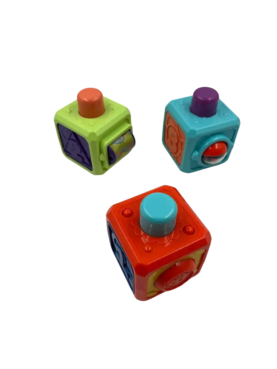 Набор из трех развивающих кубиков станет отличным подарком для малышей. Эти яркие интерактивные игрушки с подвижными элементами надолго увлекут ребенка и помогут в развитии важных навыков.