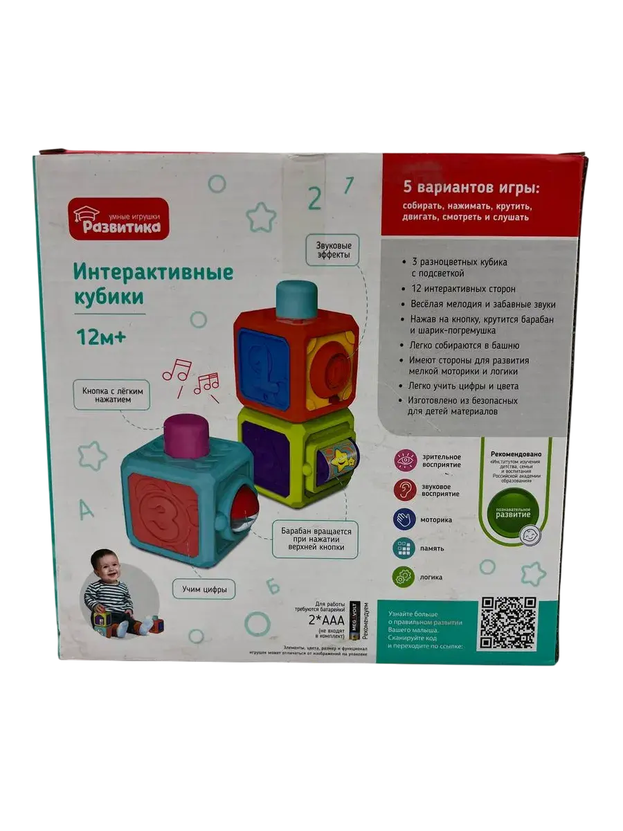 Игрушка изготовлена из безопасных материалов и подходит для детей раннего возраста. Интерактивные кубики - это отличный способ совместить веселую игру с полезным обучением.