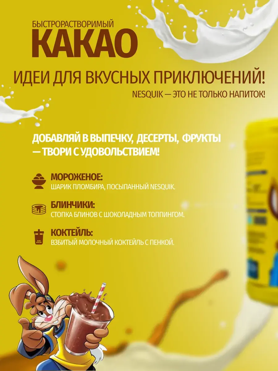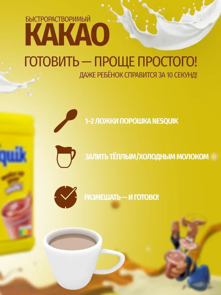 Всего две чайные ложки какао-порошка Nesquik добавляют восхитительный вкус Nesquik к стакану молока, чтобы вкуснее насладиться преимуществами молока*