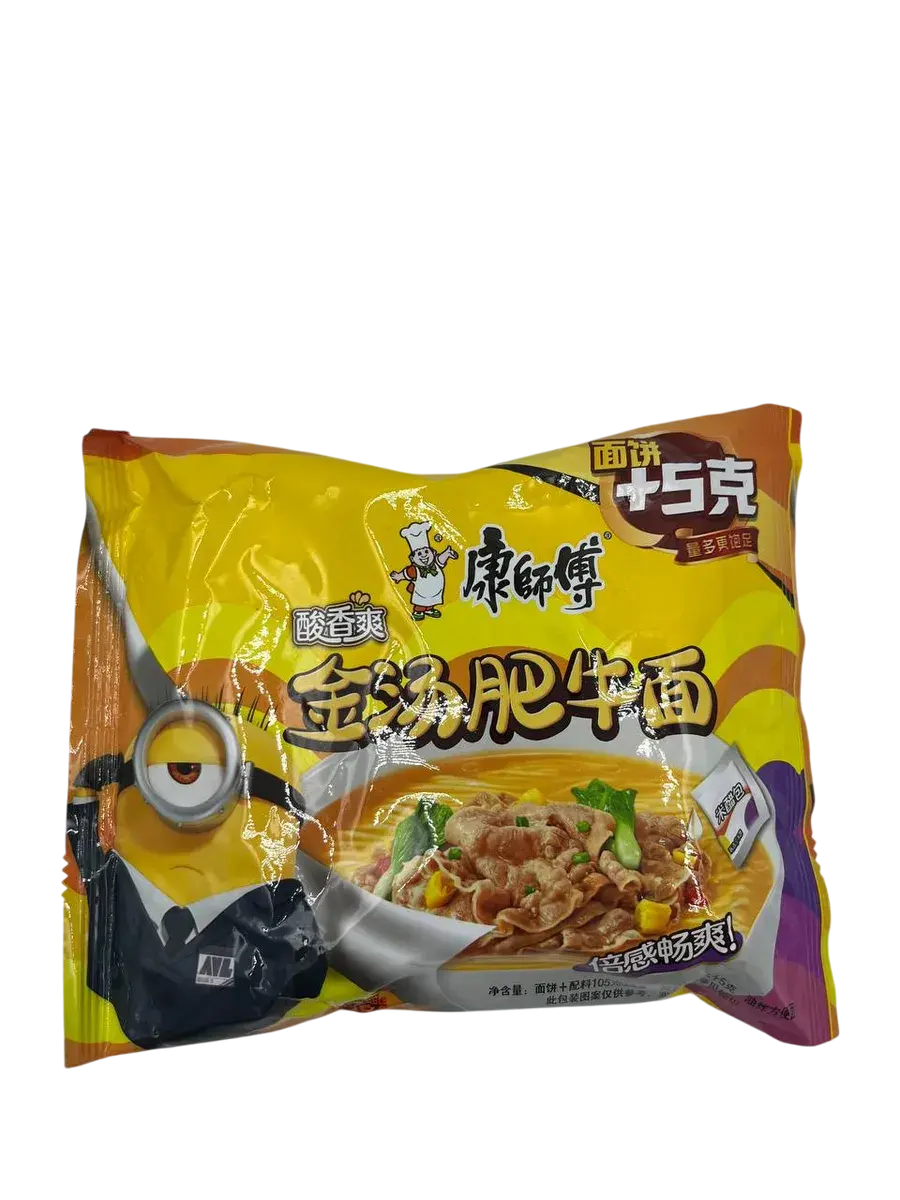 Погрузитесь в глубину настоящего мясного вкуса с лапшой Kang Shi Fu, где богатый говяжий бульон сочетается с яркой свежестью отборных овощей. Пшеничная лапша с яйцом впитывает насыщенный аромат крепкого бульона, создавая гармоничный дуэт с хрустящими овощными нотками. Это блюдо с первых ложек дарит ощущение домашнего уюта и сытной трапезы.