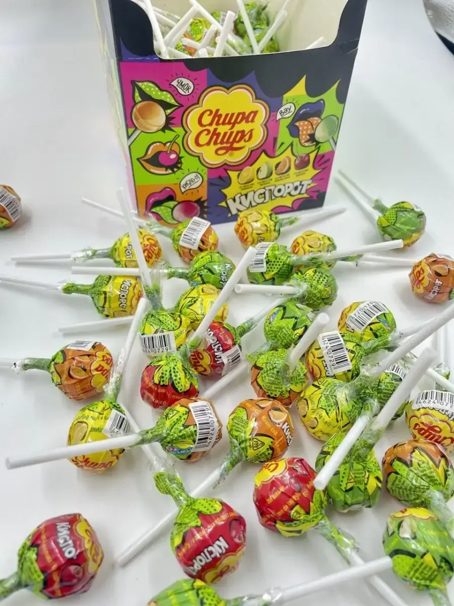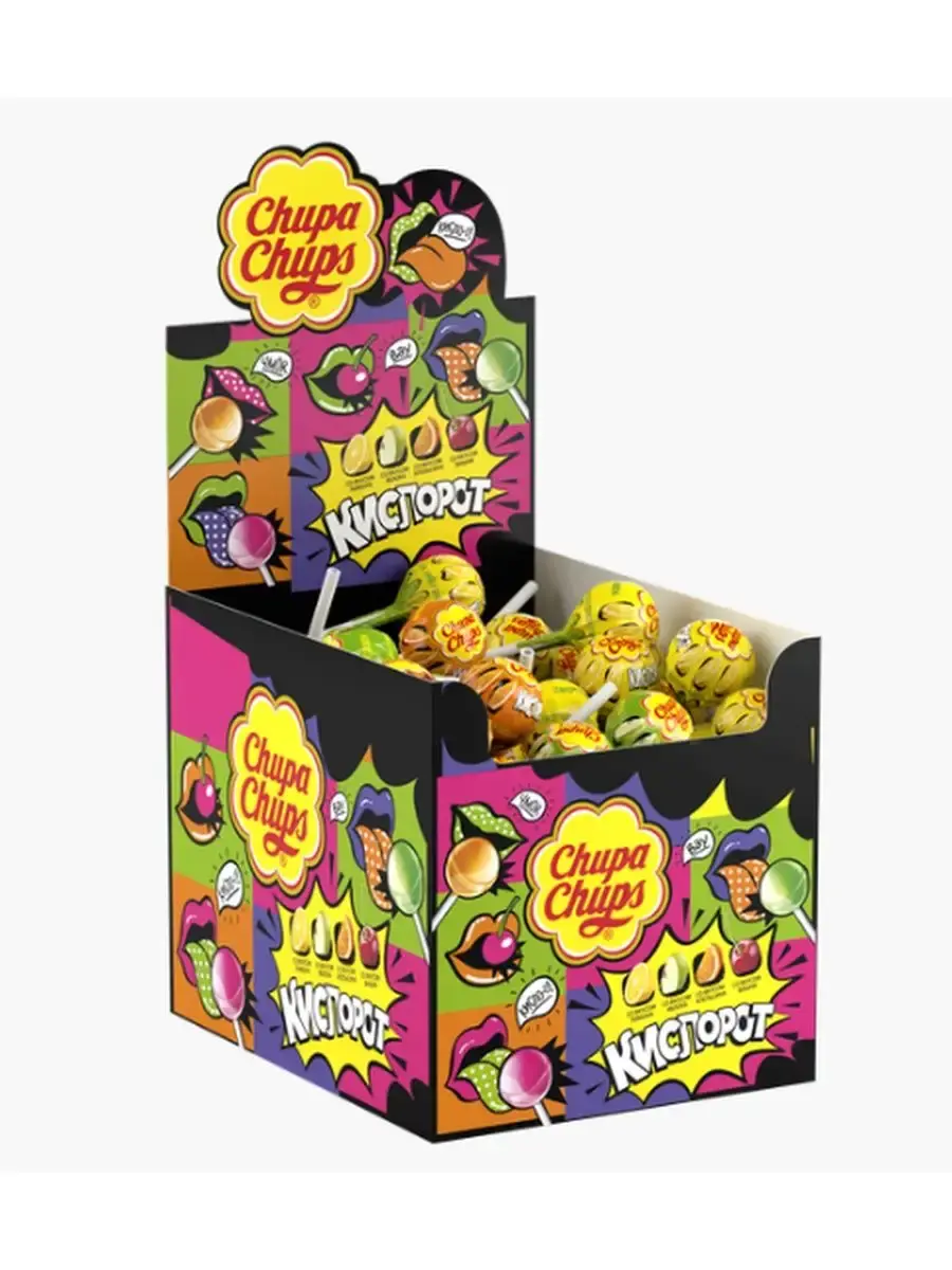 Попробуйте карамель Chupa Chups Кислорот уже сегодня и наслаждайтесь бодрящими кислыми вкусами лимона, вишни, яблока и апельсина.