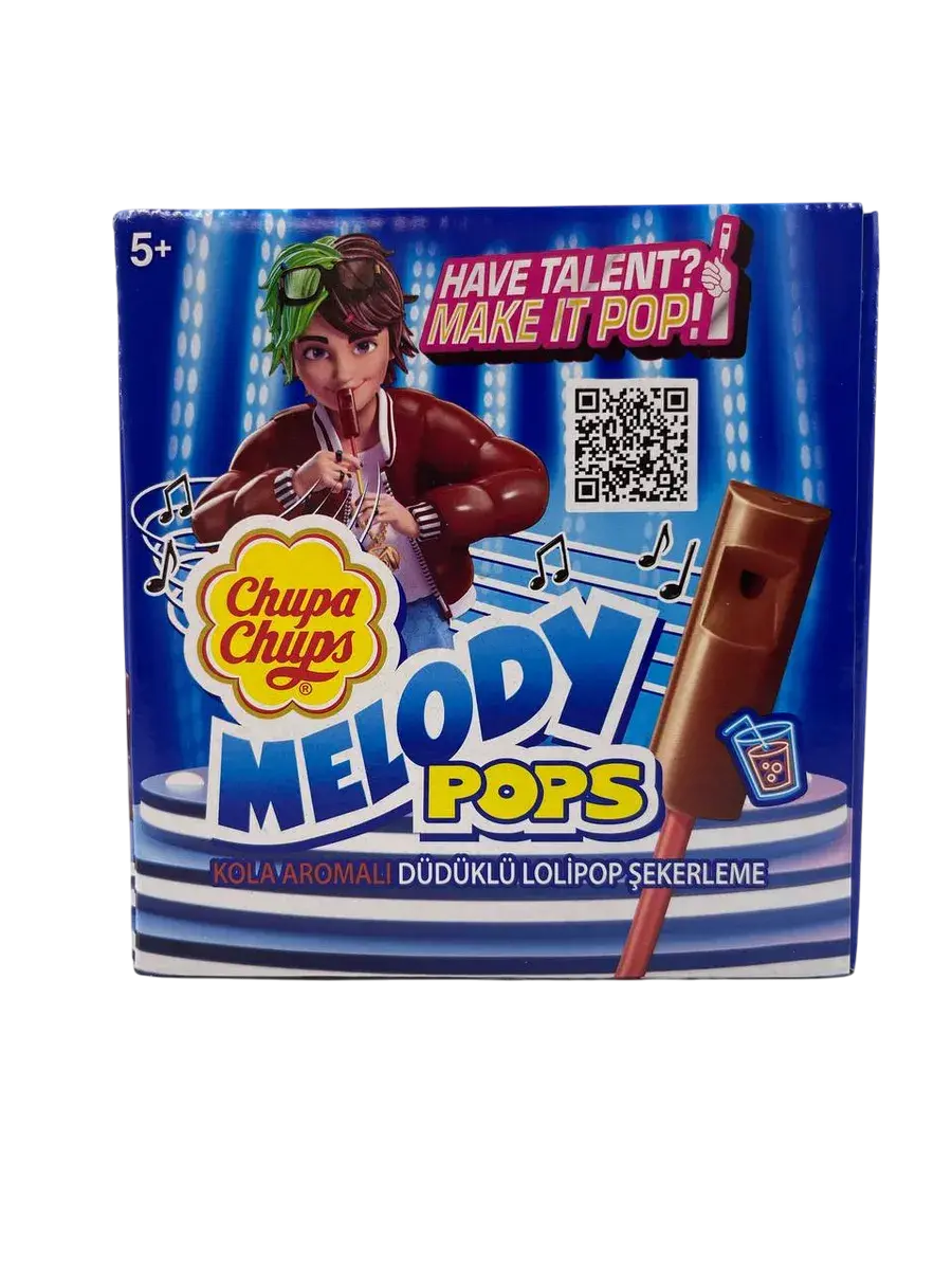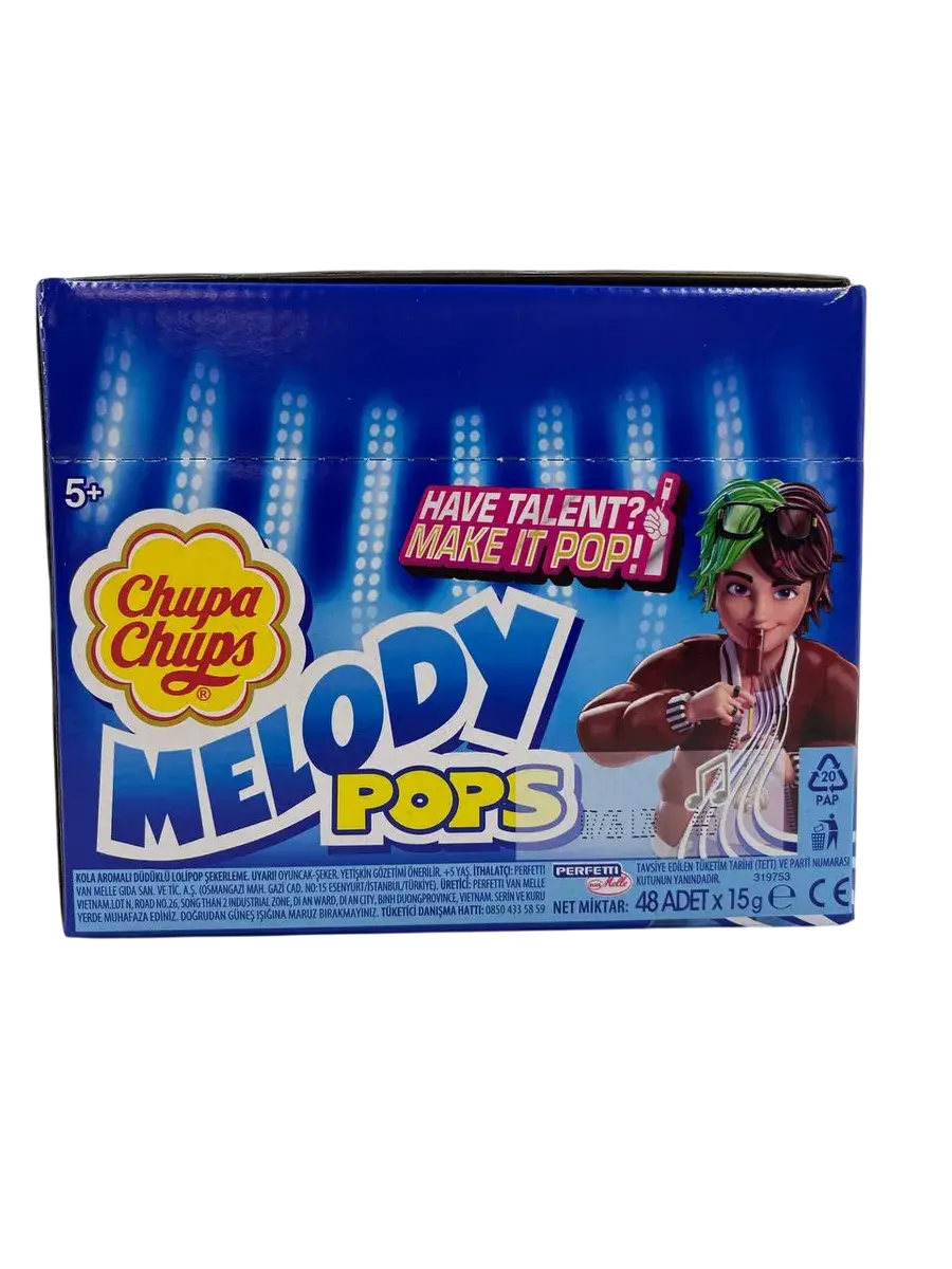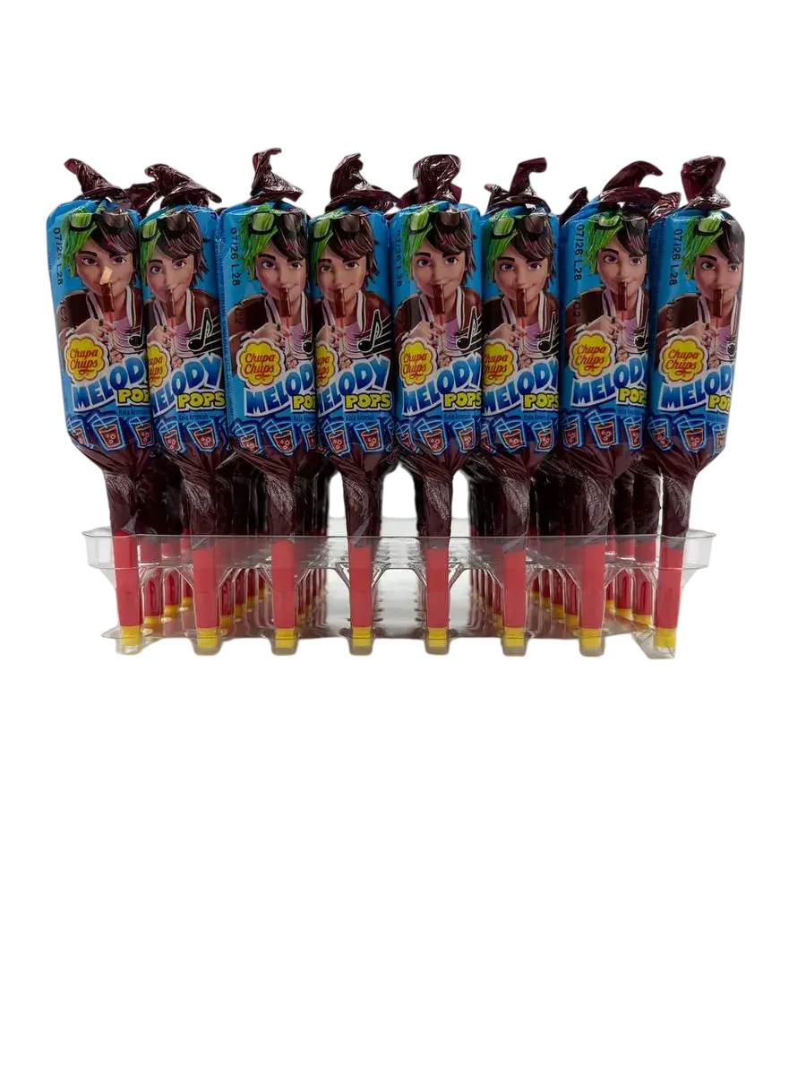 Конфеты с палкой отстой Чапс Мелодия Pops со вкусом колы . Коробка содержит 48 единиц 15 граммов конфет с палкой Chupa Chups Мелодия поп. Создавайте свою собственную музыку с помощью мелодии Pops.