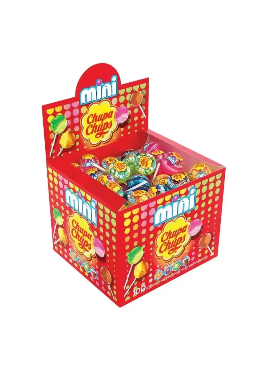 В одном шоубоксе - 100 штук конфет Chupa Chups Мини, которые легко взять с собой в гости или подарить друзьям. Эта любимая карамель на палочке теперь доступна в мини-формате, чтобы вы могли наслаждаться ею в любом месте и в любое время!