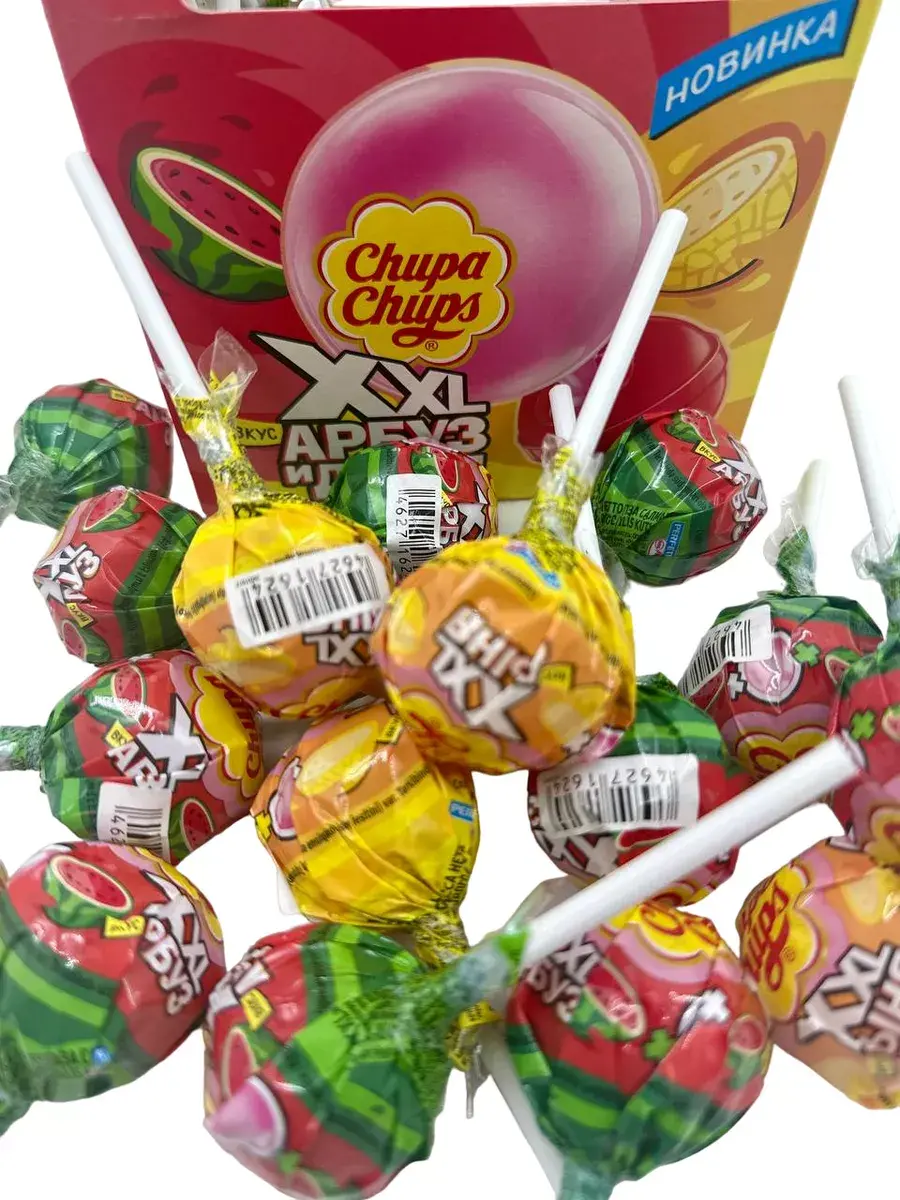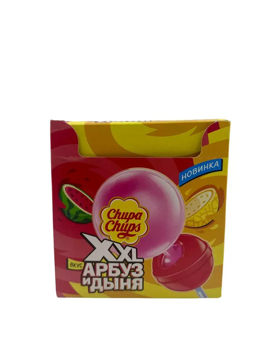 В шоубоксе Chupa Chups XXL Арбуз и Дыня – 40 штук карамели на палочке. Два слоя карамели со вкусами сочных летних фруктов и жевательной резинкой внутри. Он подойдет для вечеринок и праздников, станет угощением гостям, которые любят сладости и веселье!