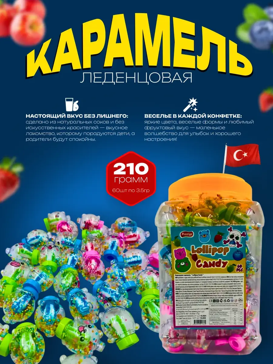 Попробуйте оригинальную карамель от турецкого производителя Prestige, где каждый леденец выполнен в забавной форме панды . В упаковке вас ждет 60 ярких карамелек по 3,5 грамма каждая, упакованных в индивидуальные пластиковые обертки для идеальной свежести.