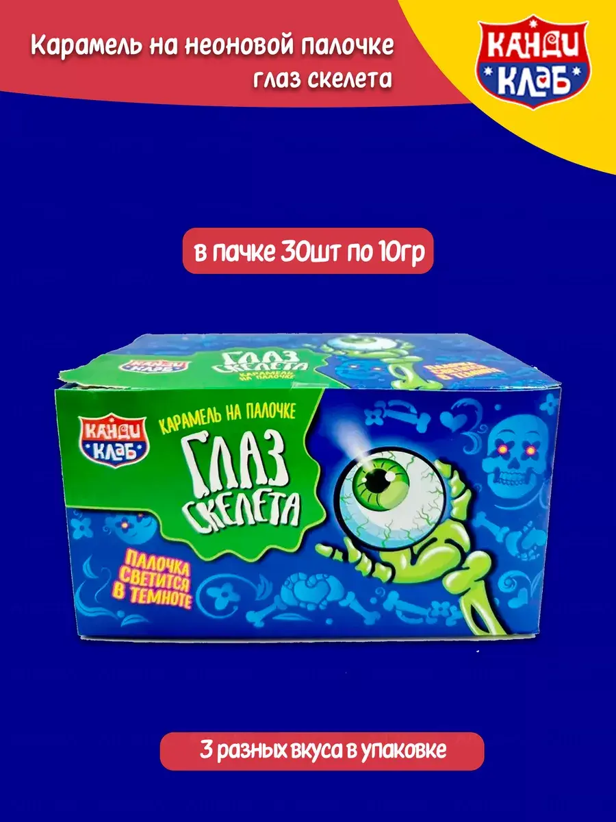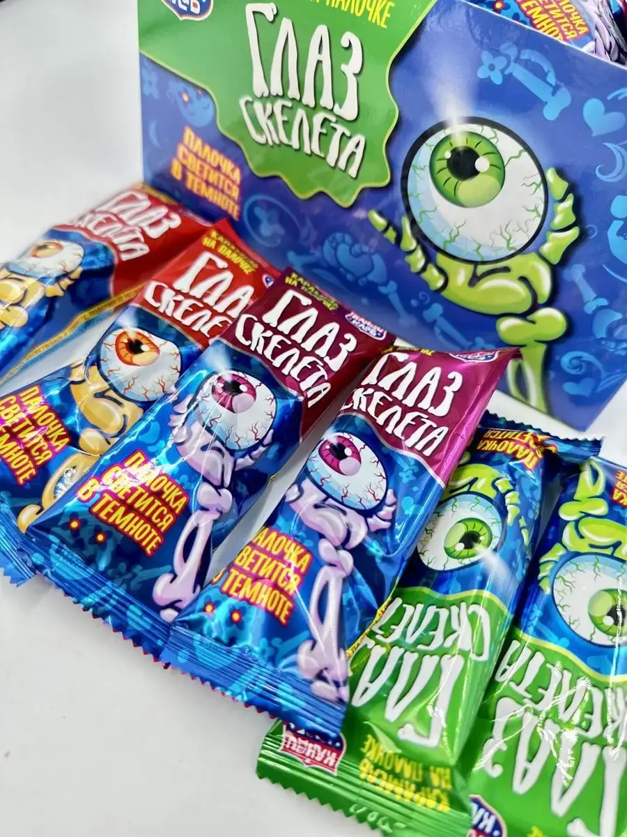 Добро пожаловать в мир загадочных вкусов и неоновых сказок с леденцами на палочке от Канди Клаб! Эти удивительные леденцы в форме глаза скелета приведут в восторг как детей, так и взрослых, и подарят неповторимые вкусовые ощущения.
