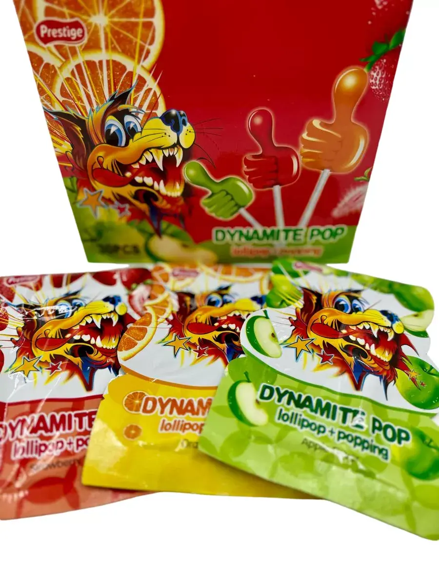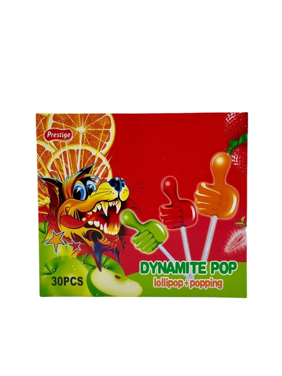 Карамель на палочке Dynamite Pop прекрасное лакомство которое понравится и детям и взрослым ( бабушкам дедушкам родителям папе и маме сестре и брату друзьям коллегам любимому парню или любимой девушке ), 30 штук леденцов хватит на большую компанию. Чупсы можно расфасовать на много подарочных наборов к массовым праздникам на которые дарят сладкие подарки.
