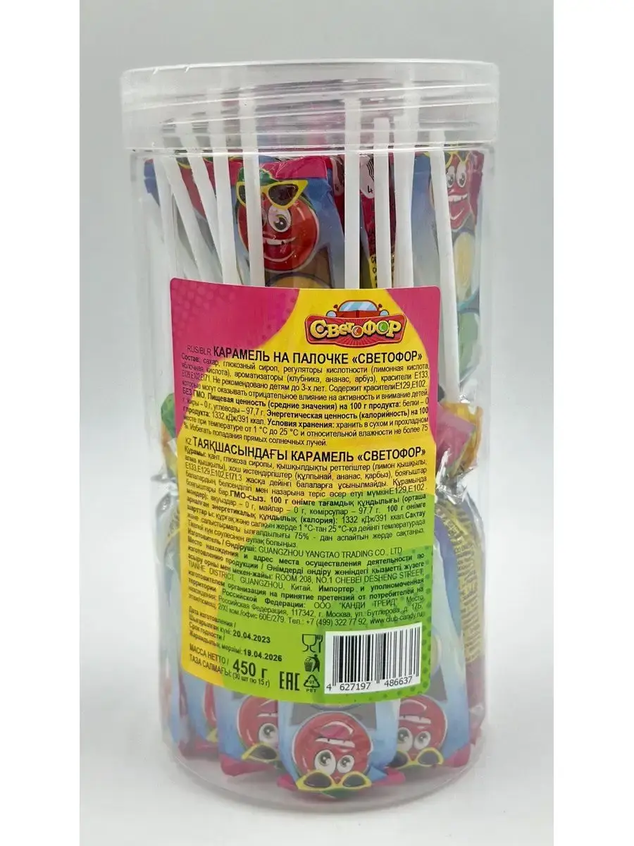 В нашей удобной упаковке вас ждет настоящий праздник - целых 30 леденцов на палочке, каждый по 15 грамм, тщательно упакованных в индивидуальные пленки. А какое удовольствие открыть пластмассовую банку и увидеть яркие карамельки в форме светофора, готовые подарить вам волшебный опыт наслаждения.