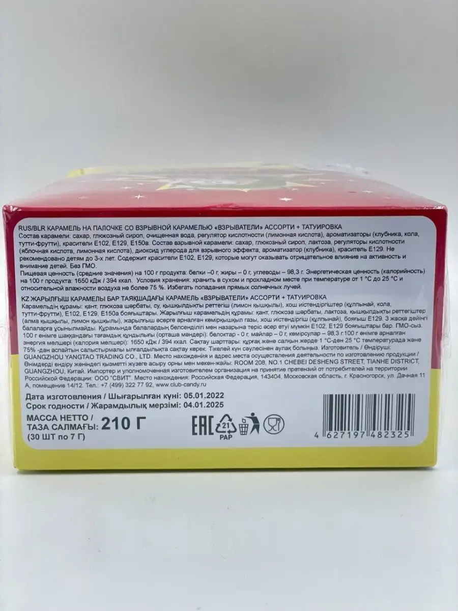Приветствуем любителей сладостей! Хотите добавить яркости в свою жизнь и весело провести время? Тогда леденцы на палочке "Взрыватели" от Кенди Клаб - идеальный выбор для вас! Набор, который заинтересует даже взрослых: вкуснейшие конфеты на палочке, взрывная карамель и временные татуировки.