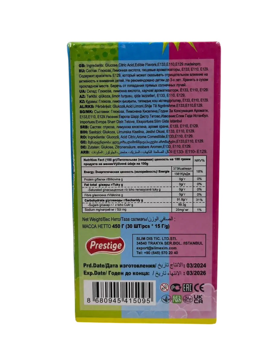 Попробуйте этот необычный микс вкусов от Prestige – сделайте каждый день вашего ребенка сладким и незабываемым! В одной большой упаковке – целых 30 порций радости по 15 грамм каждая.