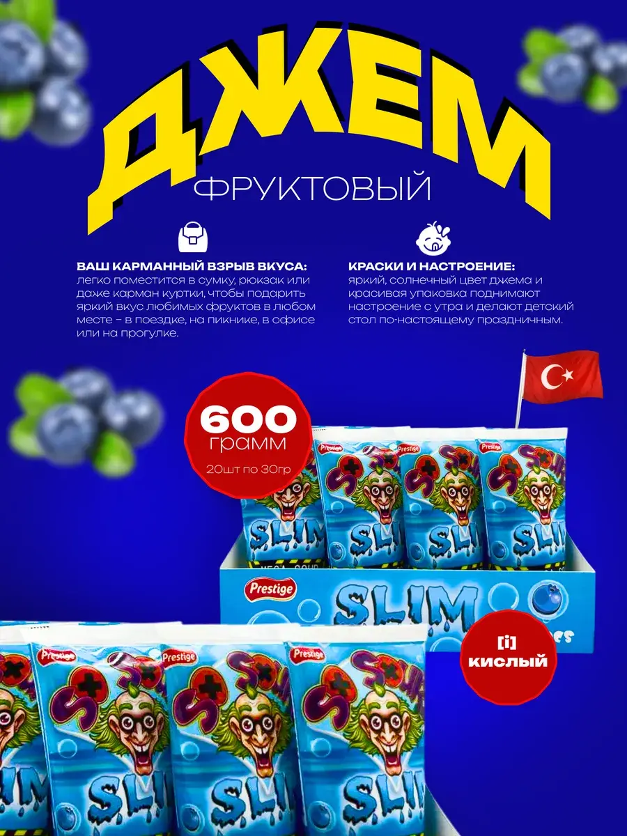 Турецкий бренд Prestige представляет удобный и вкусный способ освежиться – кислое желе со вкусом сочной черники в практичных тюбиках. Просто нажмите на тюбик – и наслаждайтесь ярким кисло-сладким вкусом в любое время и в любом месте.
