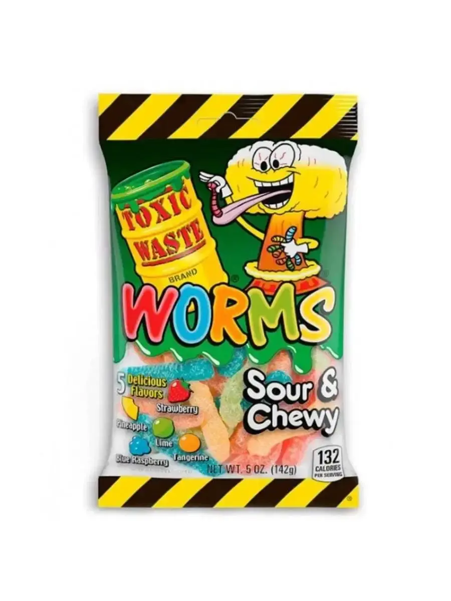 Waste Sour Bears -пожалуй самый кислый мармелад, присутствующий на мировом кондитерском рынке. Мармеладные мишки Toxic Waste Sour Bears, продолжают коллекцию необычных сладостей от инновационной американской компании Candy Dynamics.Традиционный мармелад, представлен в новом, необычном свете, а сумасшедшие суперкислые сладости Токсик Вейст пополнились интересной ассортиментной позицией. Итак, фруктовая коллекция Toxic Waste Sour Bears включает пять видов медведей из жевательного мармелада: Лесная ежевика, Тропический ананас, Сицилийский мандарин, Мексиканский лайм, Луговая клубника.Пластиковая упаковка, оформленная в фирменном стиле Toxic Waste, с изображением фирменного маскота - "Ядерного взрыва", содержит 142 грамм конфет. Такого количества кислого мармелада вполне достаточно, чтобы развлечь веселую компанию школьных друзей, либо подруг. Увлекательный квест по поеданию кислого мармелада -лучшее времяпрепровождение для детей и подростков!Waste Sour Worms – пожалуй самый кислый мармелад, присутствующий на мировом кондитерском рынке. Мармеладные червячки Toxic Waste Sour Worms, продолжают коллекцию необычных сладостей от инновационной американской компании Candy Dynamics.Традиционный мармелад, представлен в новом, необычном свете, а сумасшедшие суперкислые сладости Токсик Вейст пополнились интересной ассортиментной позицией. Итак, фруктовая коллекция Toxic Waste Sour Bears включает пять видов червячков из жевательного мармелада:• Лесная ежевика• Тропический ананас• Сицилийский мандарин• Мексиканский лайм• Луговая клубника