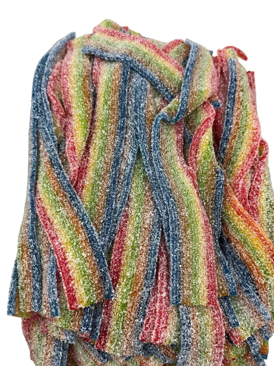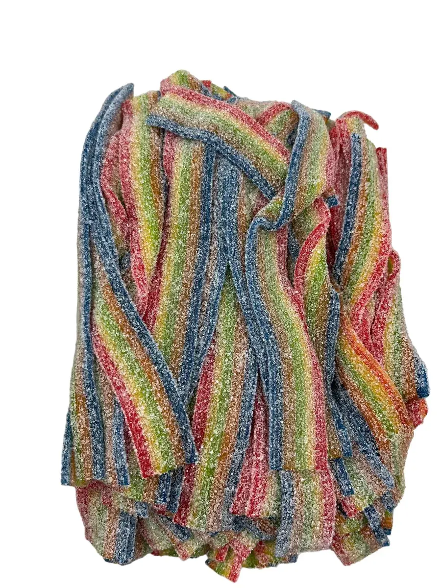 - Кислый мармелад ленты в обсыпке — мягкий, жевательный и с приятной кислой пудрой, которая так нравится любителям сладостей.