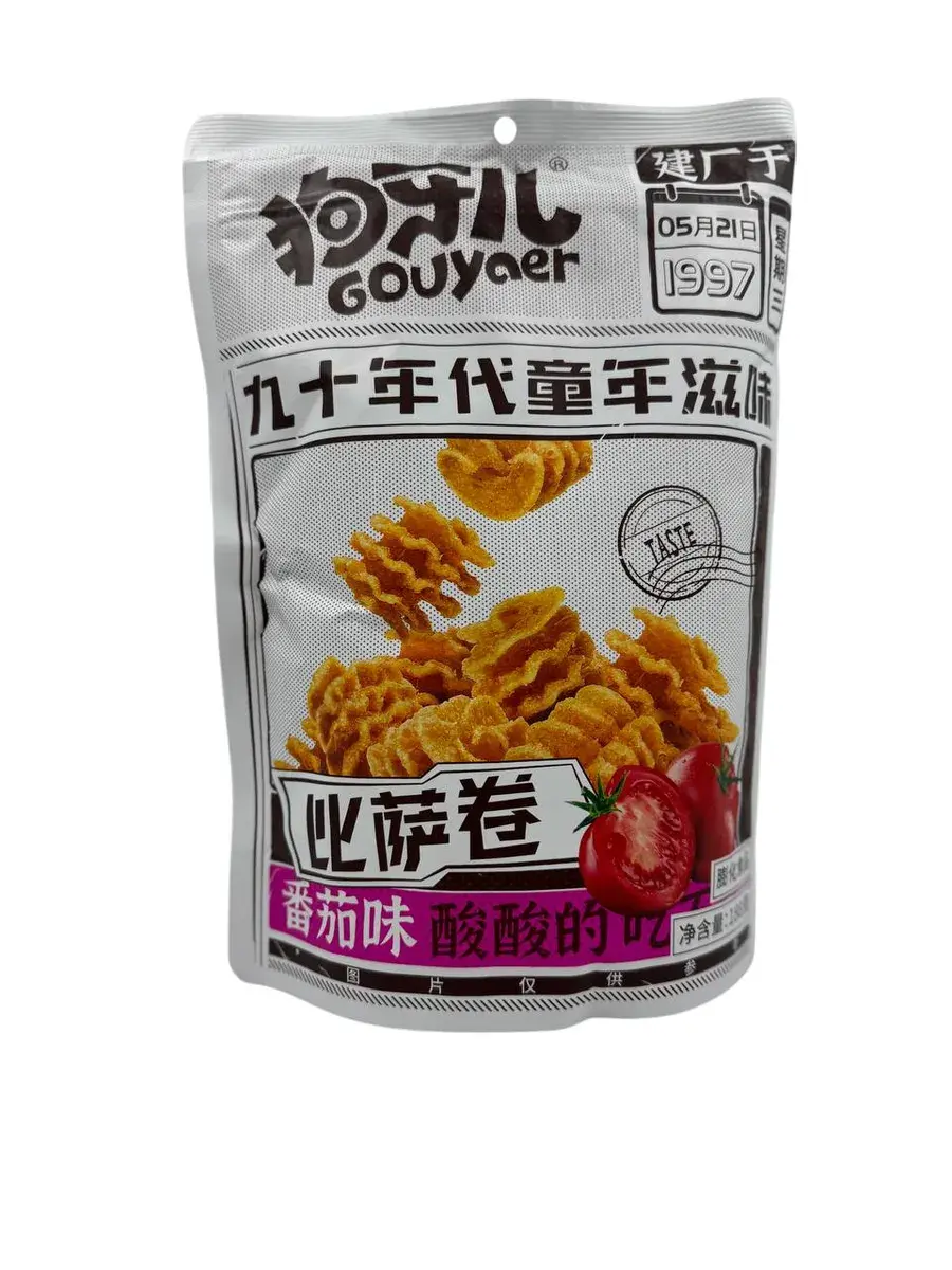 Хрустящие, острые и совершенно неотразимые — эти чипсы Gouyaer перенесут вас в атмосферу 90-х! Вдохновленные вкусами детства, но с современным акцентом, они идеально подойдут как для компании, так и для личного удовольствия. Ощутите магию любимых уличных закусок в каждом кусочке!
