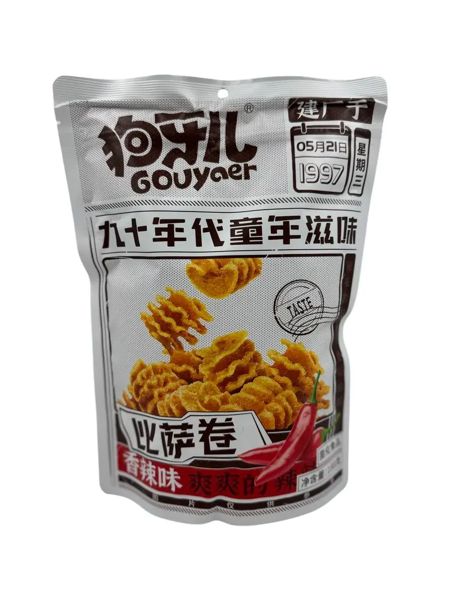 Хрустящие, острые и совершенно неотразимые — эти чипсы Gouyaer перенесут вас в атмосферу 90-х! Вдохновленные вкусами детства, но с современным акцентом, они идеально подойдут как для компании, так и для личного удовольствия. Ощутите магию любимых уличных закусок в каждом кусочке!