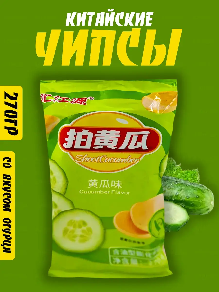 Картофельные чипсы со вкусом огурцов 270 гр: Погружайтесь в приключение необычных вкусов с этими чипсами, которые сочетают в себе хрустящий картофель и свежий аромат огурцов. Привезены из Китая, эти чипсы в большой упаковке высотой 45 см станут вкусным подарком на любой праздник для детей и взрослых.