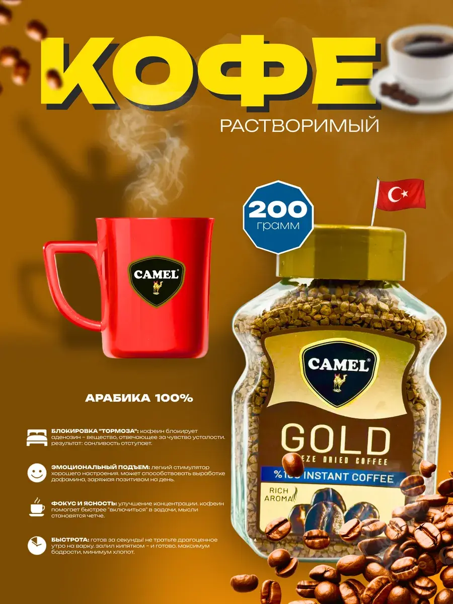 Растворимый кофе Camel Instant Gold 200 г – насыщенный вкус 100% арабики