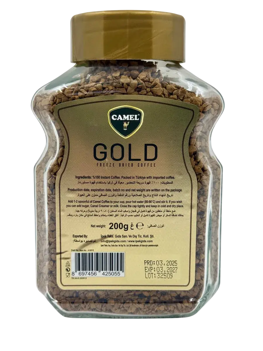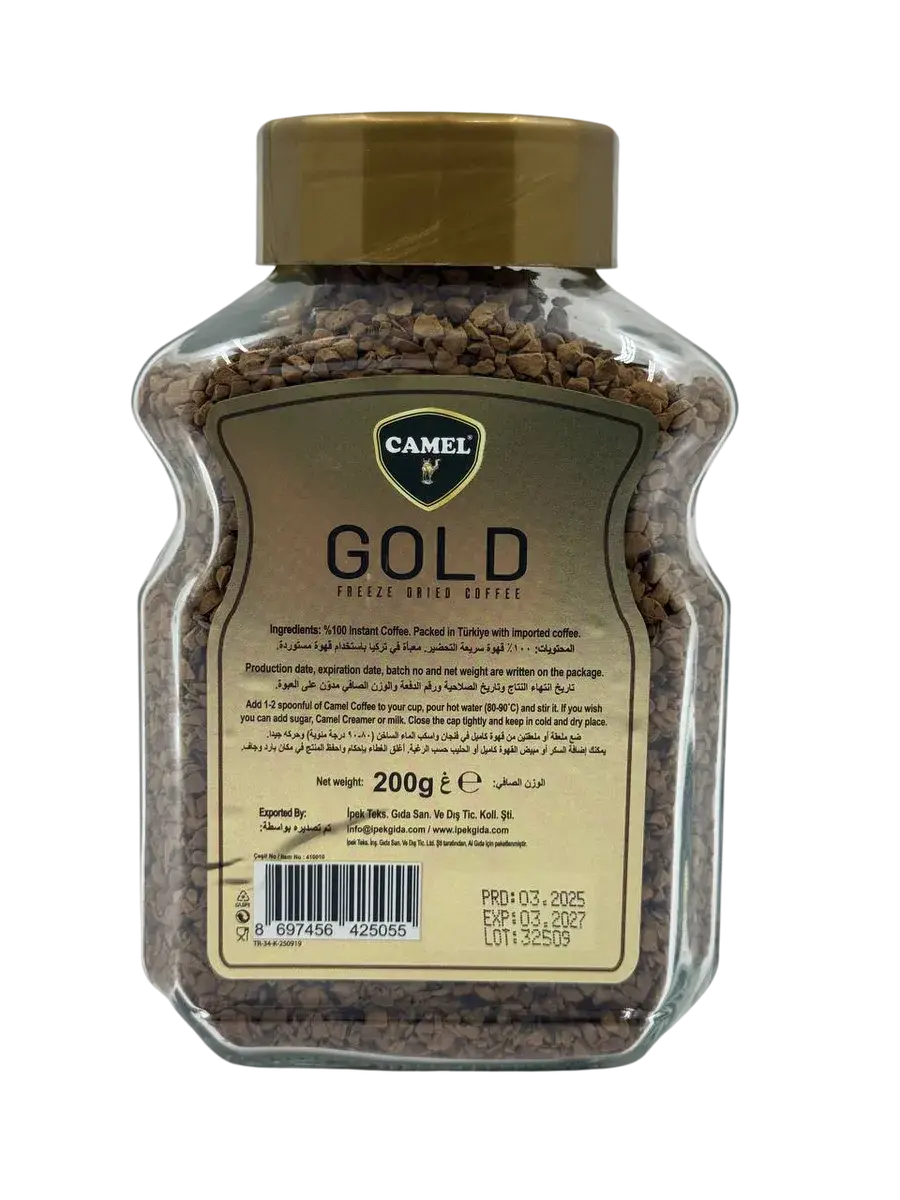 Camel Gold не содержит ГМО и полностью безопасен для здоровья. Благодаря удобной упаковке 200 г вы можете наслаждаться любимым напитком дома, на работе или в путешествии. Просто добавьте горячей воды – и ароматный кофе готов!