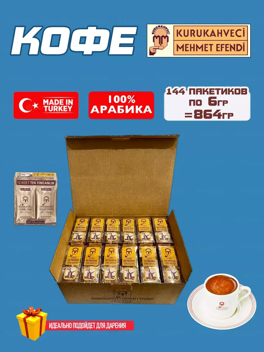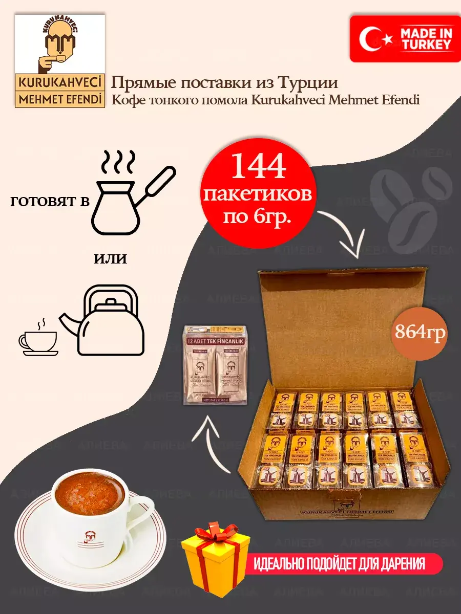 Турецкий молотый кофе Kurukahveci Mehmet Efendi арабика для турки, кофеварки, 144 пакетиков по 6гр. При каждом заваривании вы получаете свежий кофе . Kurukahveci Mehmet Efendi - лучший турецкий молотый кофе для новичков и отличный выбор для ценителей прекрасного кофе. Мелкий помол в сочетании с зернами арабики раскрывает весь аромат кофе Мехмет Эфенди. В основу кофе Kurukahveci Mehmet Efendi легла арабика высшего качества, произрастающая в Колумбии и Бразилии. Турецкий кофе с особой техникой мелкого помола, уникальным вкусом, изысканным ароматом, воздушной крем-пенкой идеален для кофеварки. Вы не останетесь равнодушными к насыщенному и безупречному вкусу турецкого молотого кофе. Оригинальный кофе предназначен для приготовления в турке, кофемашине или заваривания в чашке.