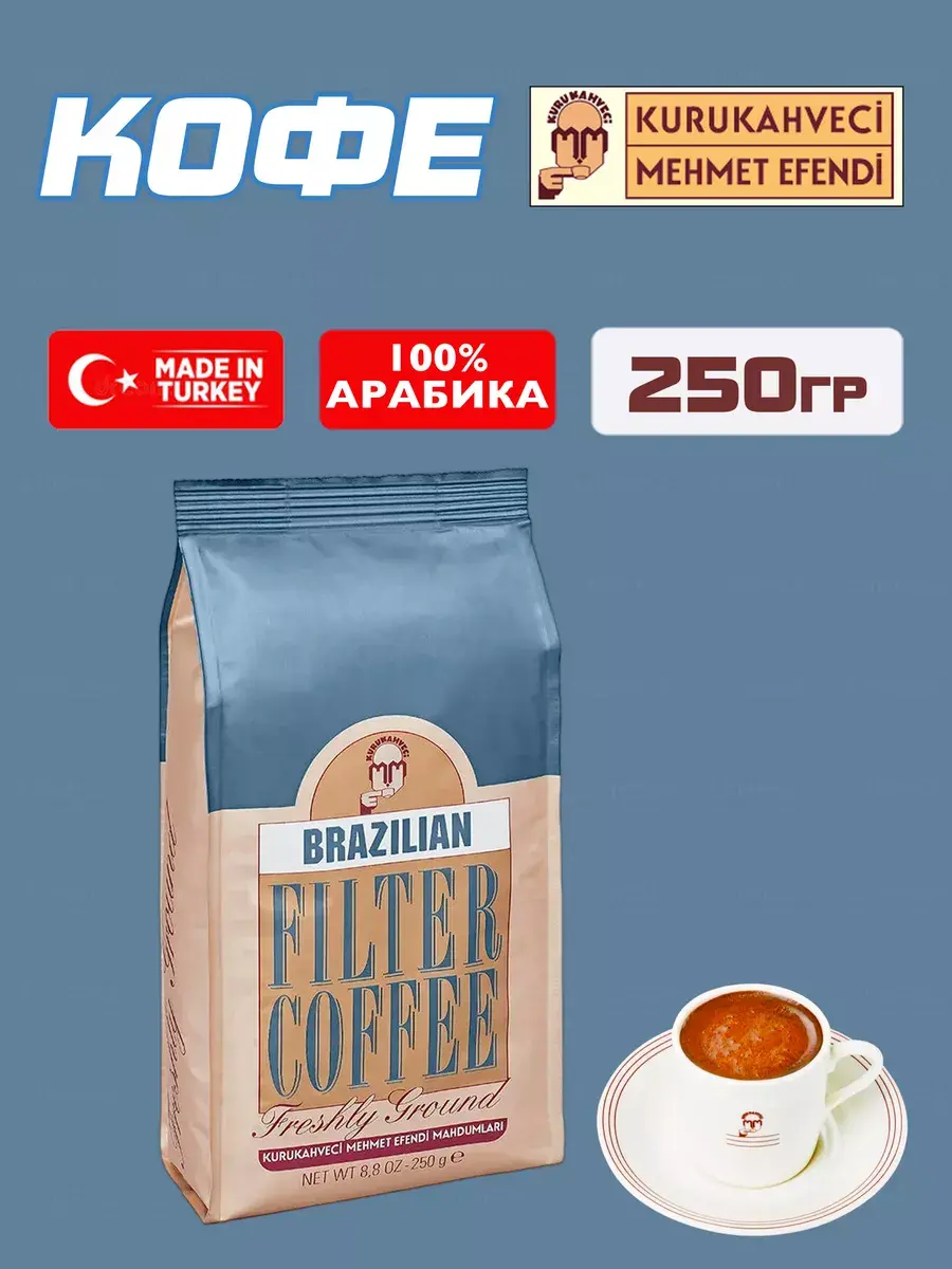 Турецкий молотый кофе средней обжарки Mehmet Efendi Brazilian Filter Coffee.