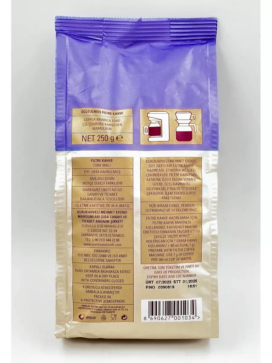 Плотная упаковка обжаренного кофе в зернах с оригинальным дизайном Мехмет Эфенди Эфиопиан Фильтер Кофе надежно защищает все свойства кофе.