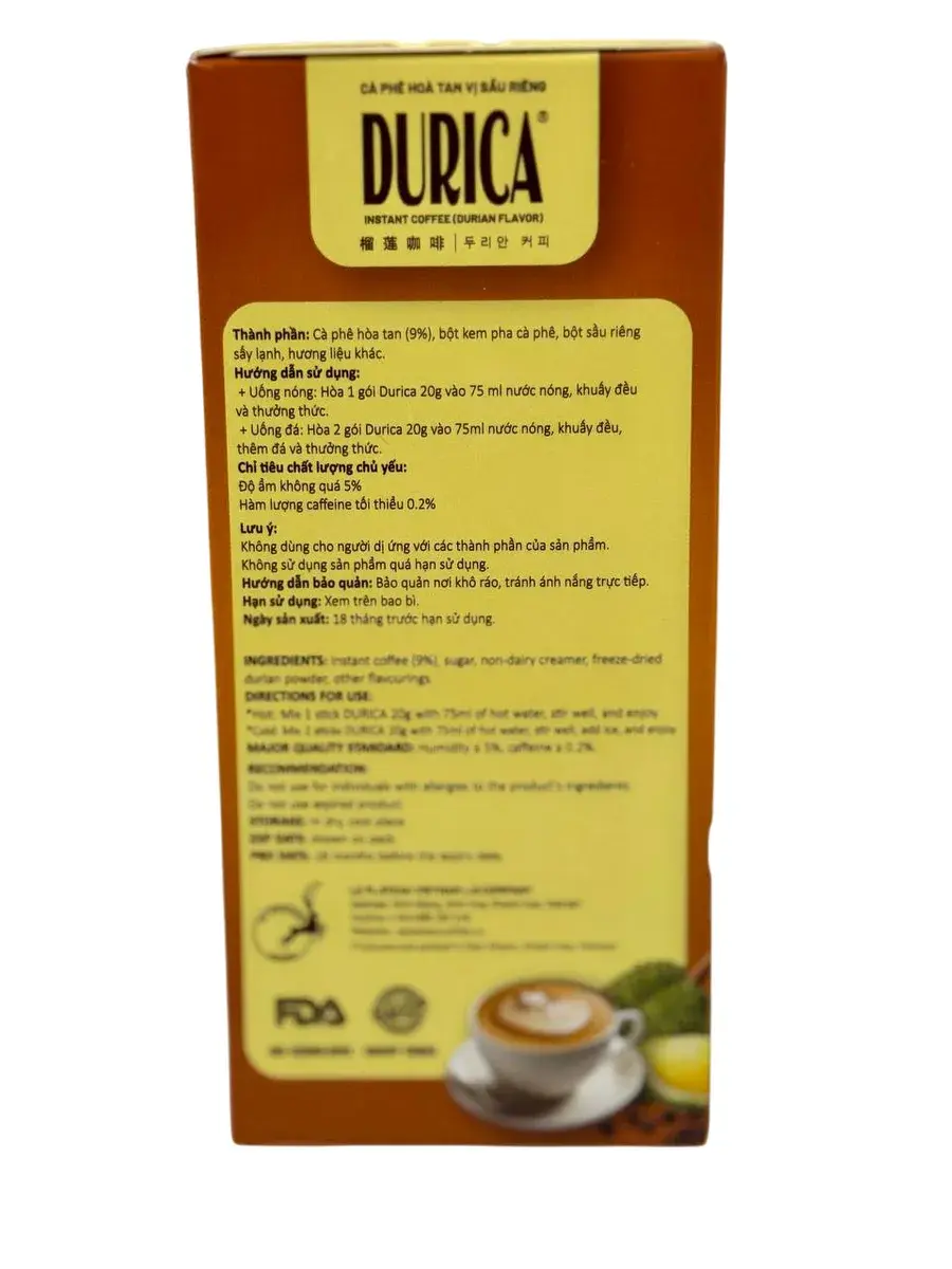 DURICA - это первый растворимый кофейный продукт Le Plateau. Креативное и оригинальное сочетание кофе и дуриана, подходящее для вьетнамских, корейских и китайских потребителей.