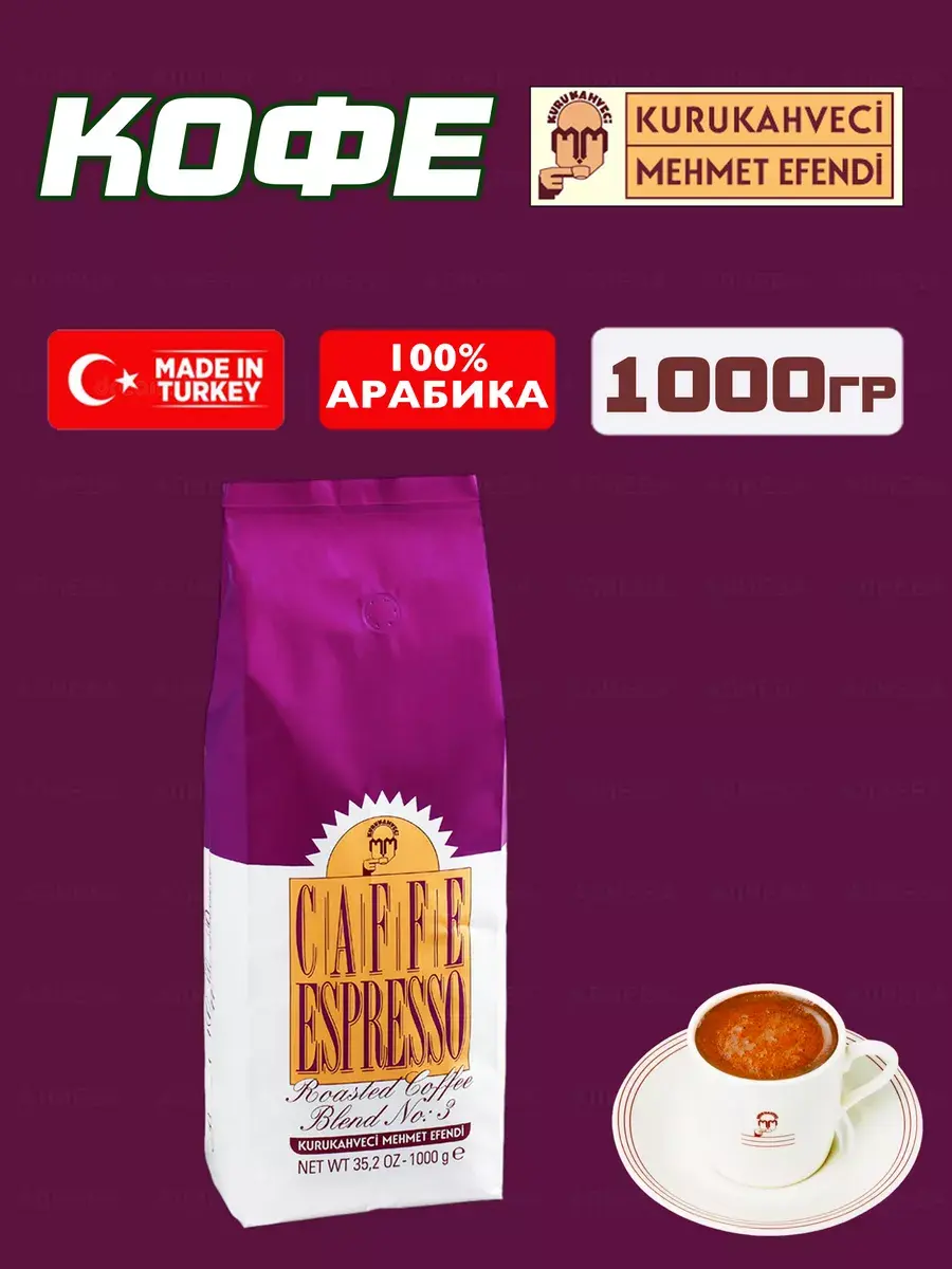 Кофе Kurukahveci Mehmet Efendi натуральный жареный в зернах для приготовления эспрессо. Кофе премиум-класса.100% Арабика, сильной обжарки. Вкус готового напитка горьковатый, с карамельными, сладкими нотами. Турецкий кофе отличается высокой плотностью и крепостью. Кофе сильной обжарки очень темный, крепкий и плотный. Он поможет проснуться утром и взбодрит после плотного обеда. Подходит для кофемашин, и при средний помол можно использовать в гейзерных и рожковых кофеварках.В данной карточке вы можете приобрести кофе фасовкой 500гр или 1кг ( на Ваш выбор)